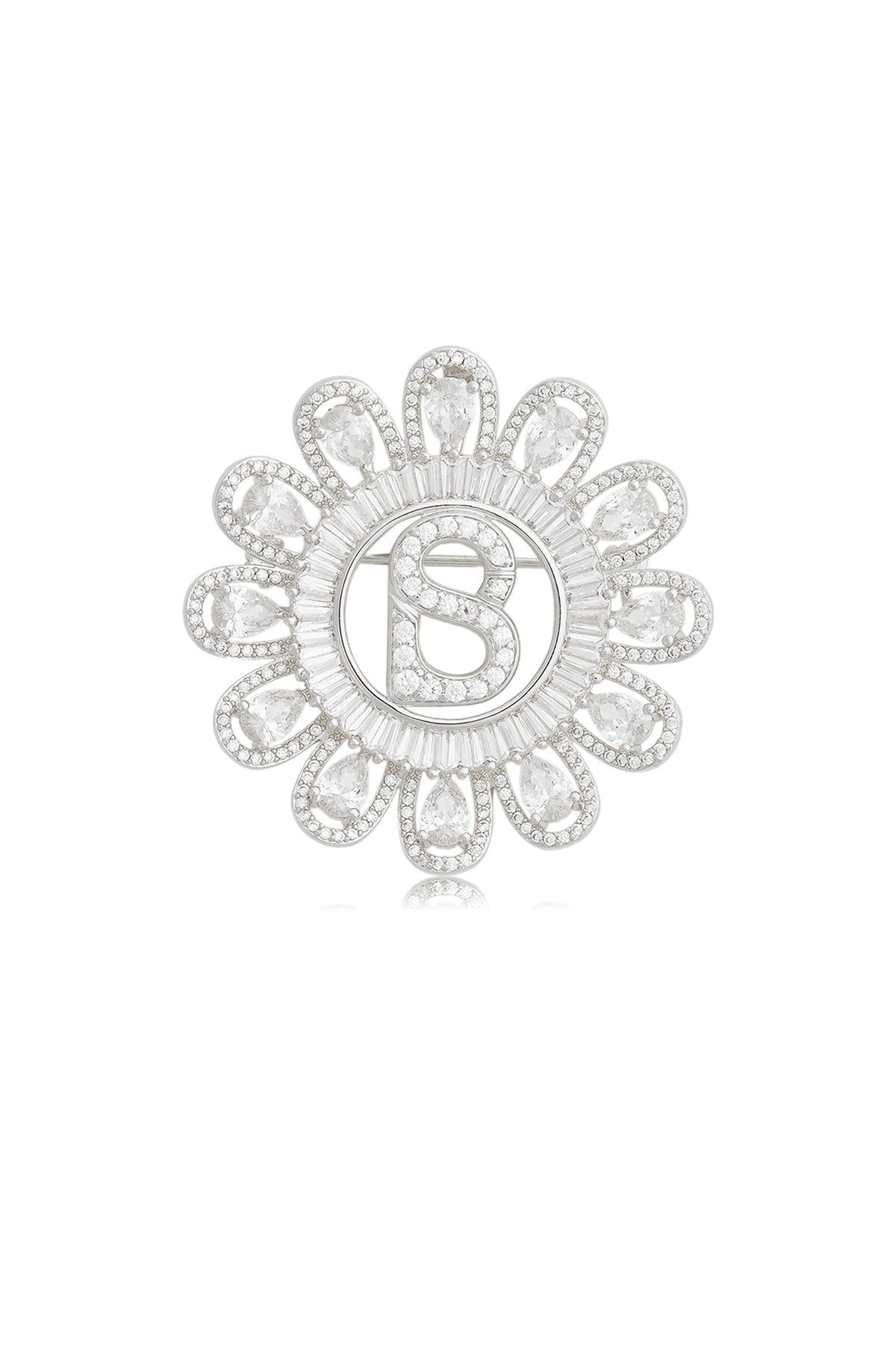 Crafted with a rounded frame, this exquisite brooch features the iconic B logo at its center, surrounded by delicate oval-shaped crystal stones that shimmer with every movement. Perfect for both formal occasions and everyday elegance.