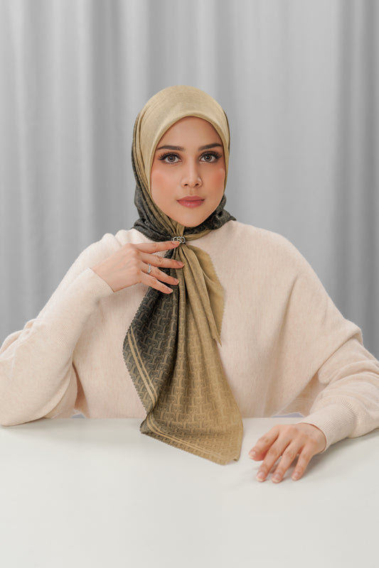 A special piece to celebrate a decade of Buttonscarves. Showcasing Special Anniversary Bimu Monogram with 13 gradient colors and rose gold B Charm.