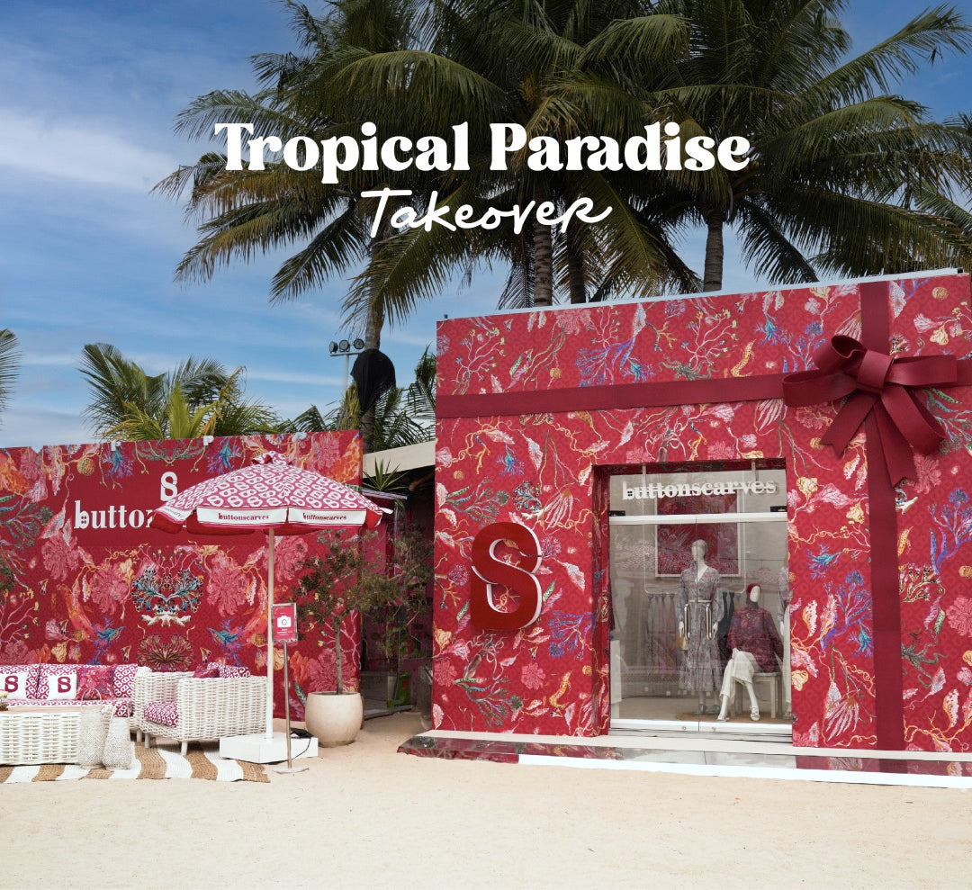 As part of the brand's global activations, Buttonscarves' Tropical Paradise Takeover is a celebration of our summer campaign. Located at Land's End, Pantai Indah Kapuk 2 from 17th July to 18th August 2024, guests can experience a unique blend of fashion and fun experiences in a vibrant tropical setting.
