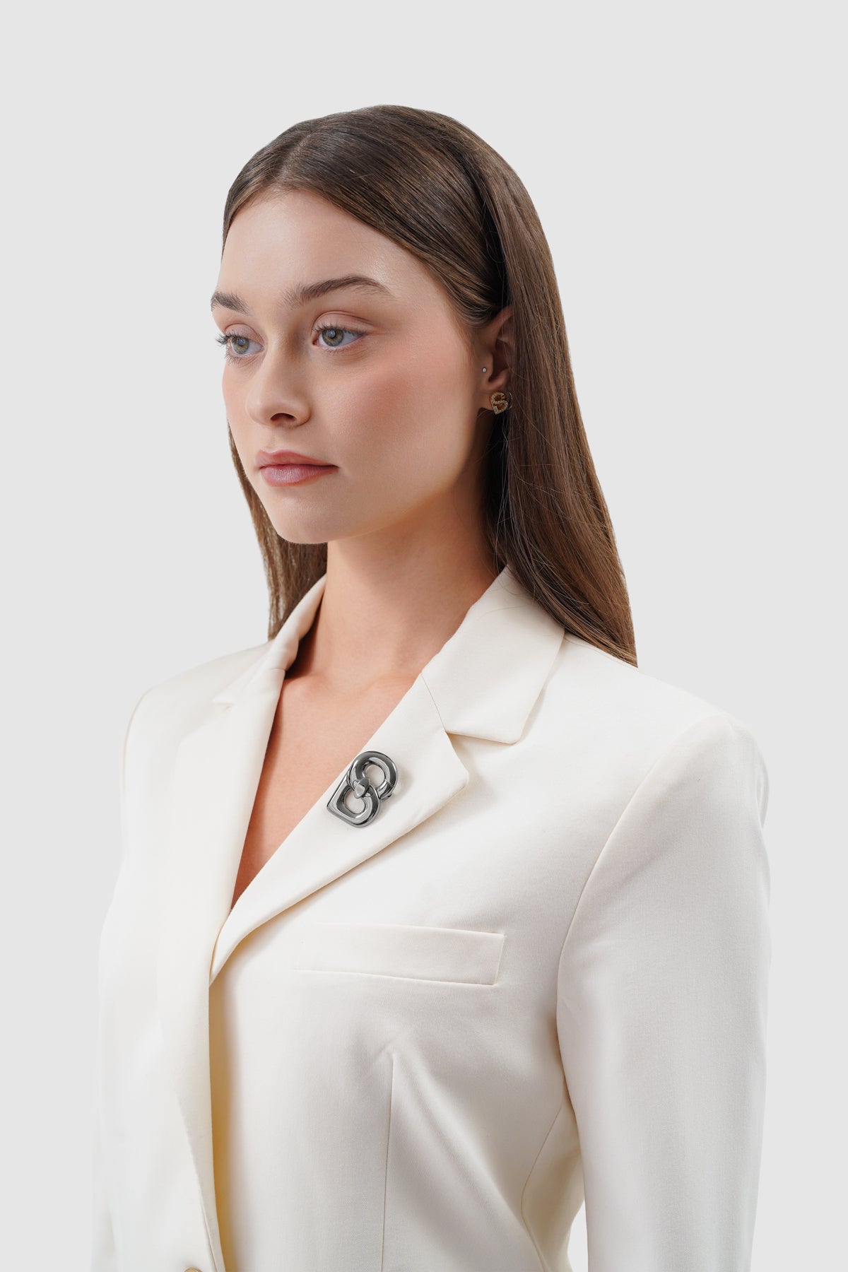 This brooch features a sculpted twist design and the iconic B logo at its center. A statement accent that works with scarves, blazers, or everyday outfits. Available in five finishes to match any mood or style.