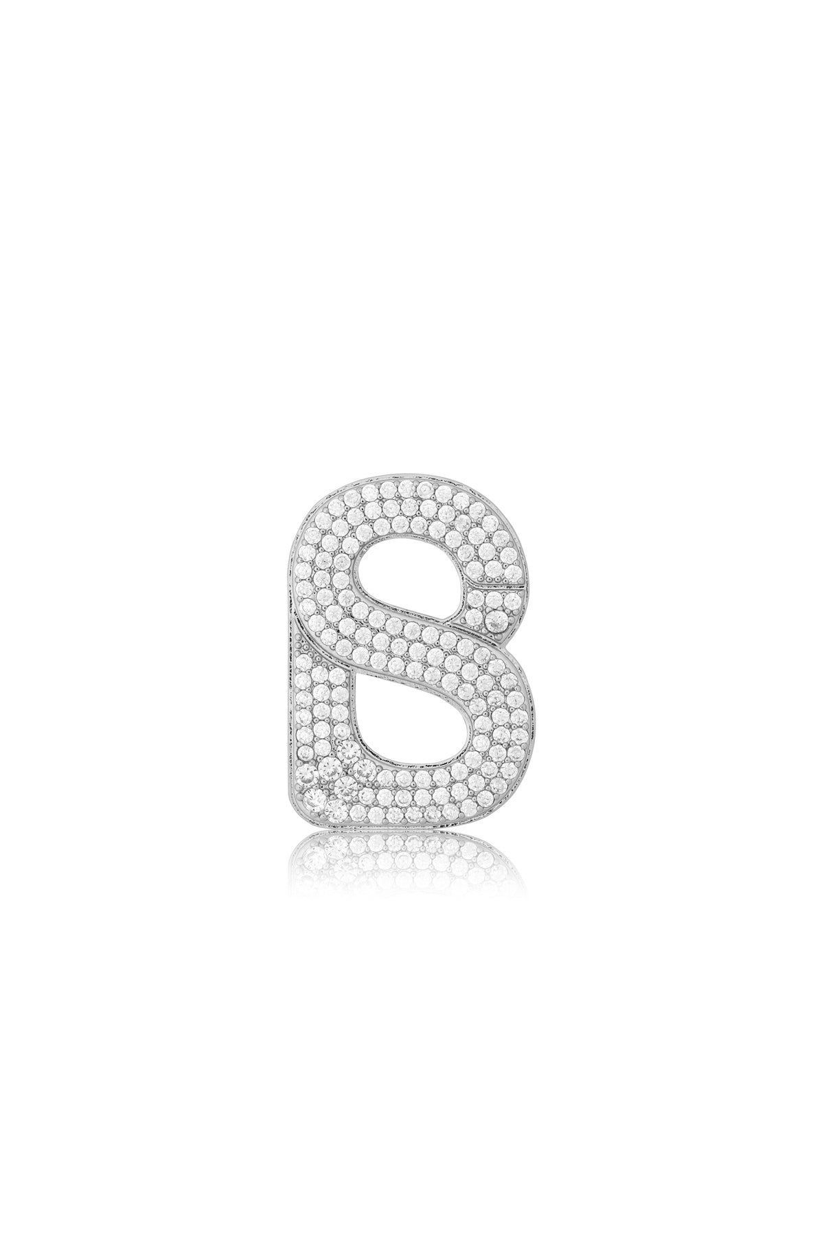 A stunning accessory crafted in the 3D shape of the signature B Logo. This ring brooch is adorned with dazzling cubic zirconia crystals.. Perfect for securing scarves in place, it is both functional and stylish, making it a must-have addition to your accessory collection.