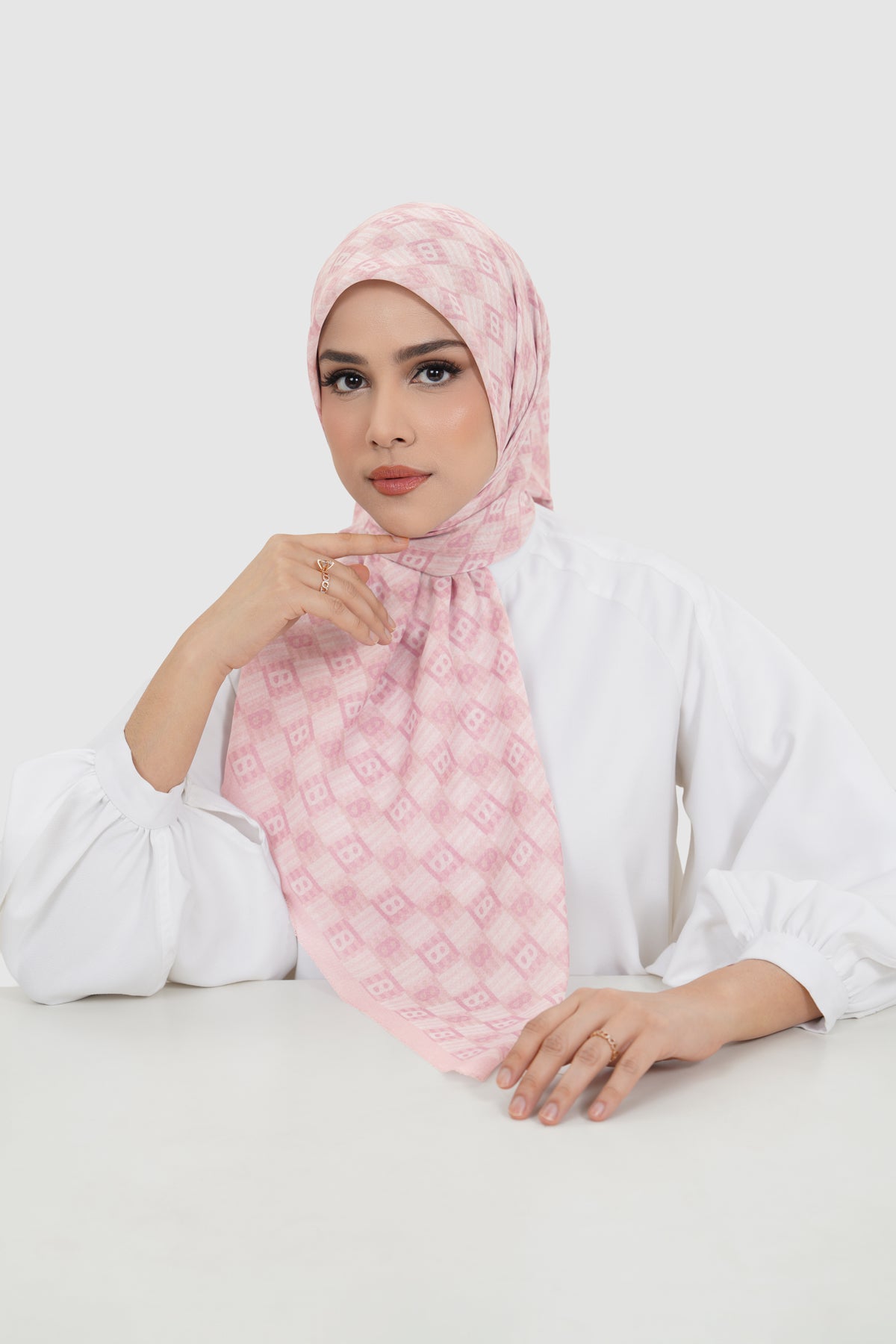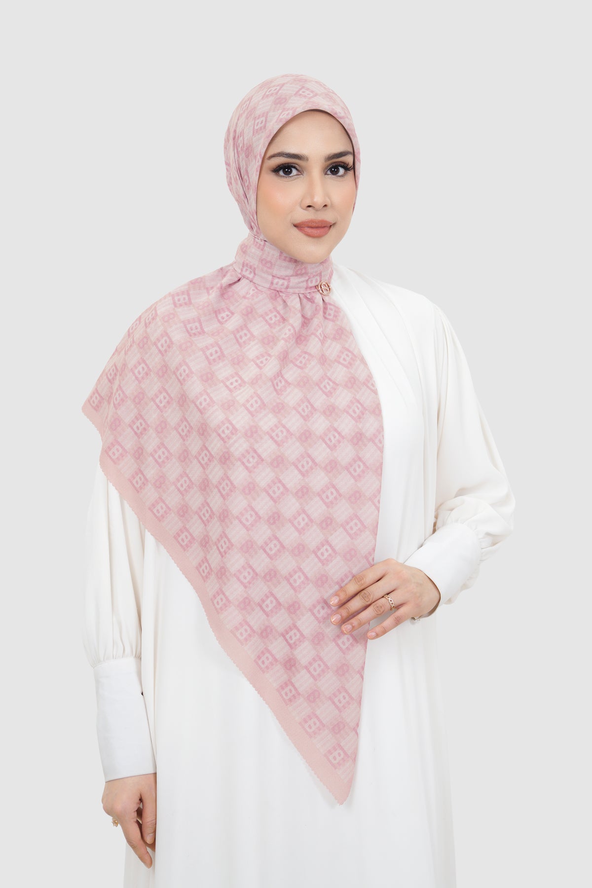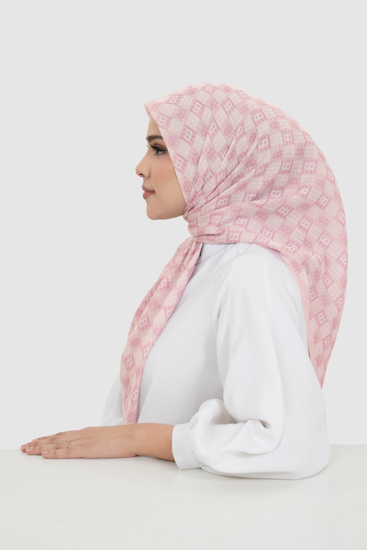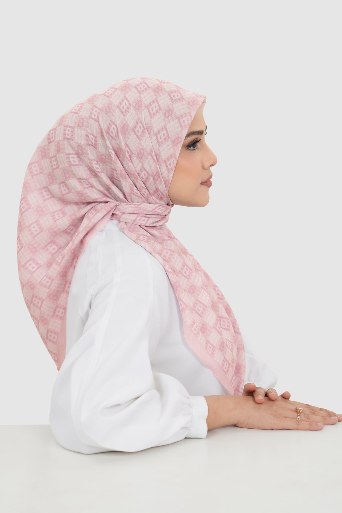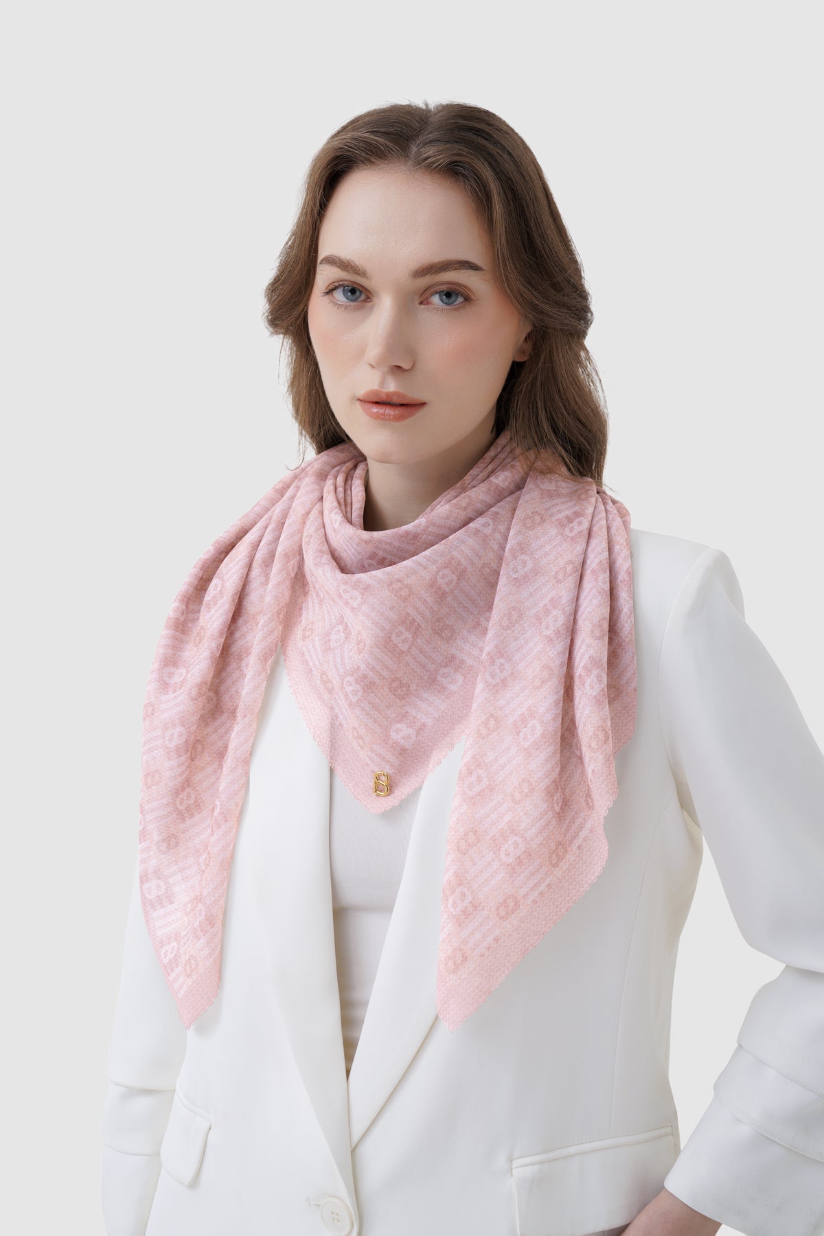 Inspired by traditional anyam weaving, this square scarf features interwoven monogram motifs arranged in a rhythmic, repeating pattern. Available in 15 colors, it offers versatile styling options to suit both statement and everyday looks.