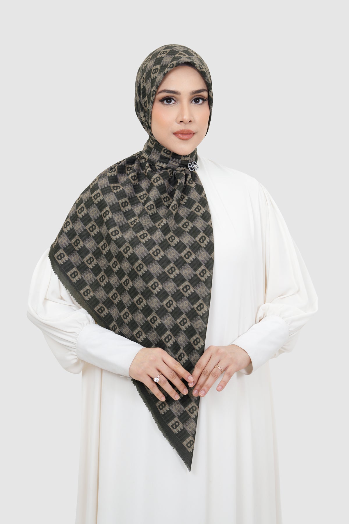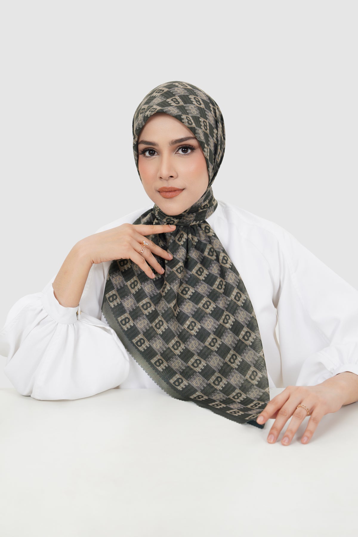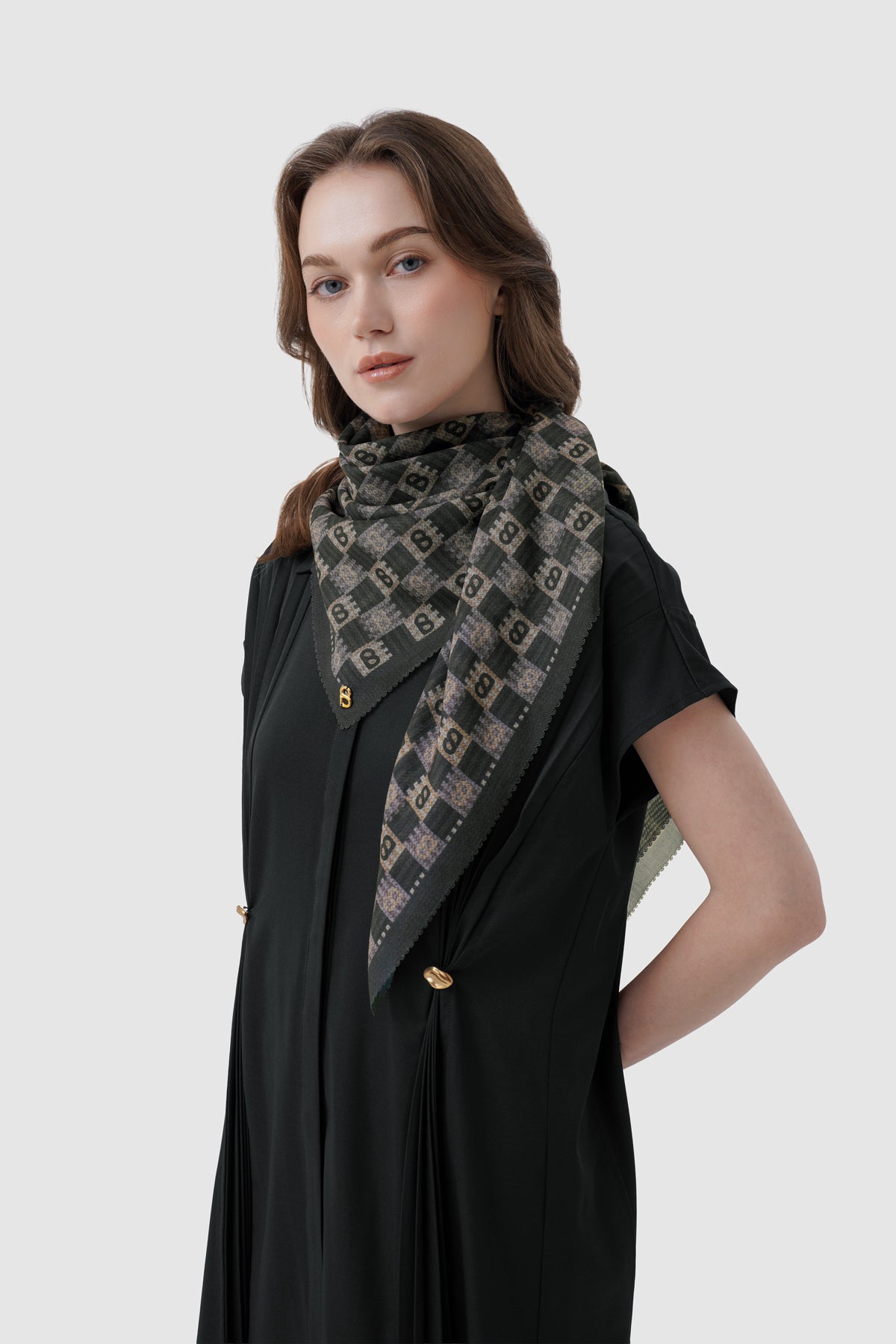 Inspired by traditional anyam weaving, this square scarf features interwoven monogram motifs arranged in a rhythmic, repeating pattern. Available in 15 colors, it offers versatile styling options to suit both statement and everyday looks.