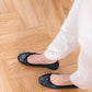 These chic shoes feature decorative bow detail with signature B hardware, elevating the overall look. These shoes have a convenient slip-on design and a low flat heel and provide style and comfort for every occasion.