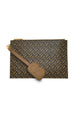 A fashionable and functional accessory that boasts the distinctive Bimu Monogram pattern, exuding sophistication and luxury. Crafted with a combination of vegan leather and cow leather, this clutch features a wrist strap with the signature B-tag for an understated signature touch.