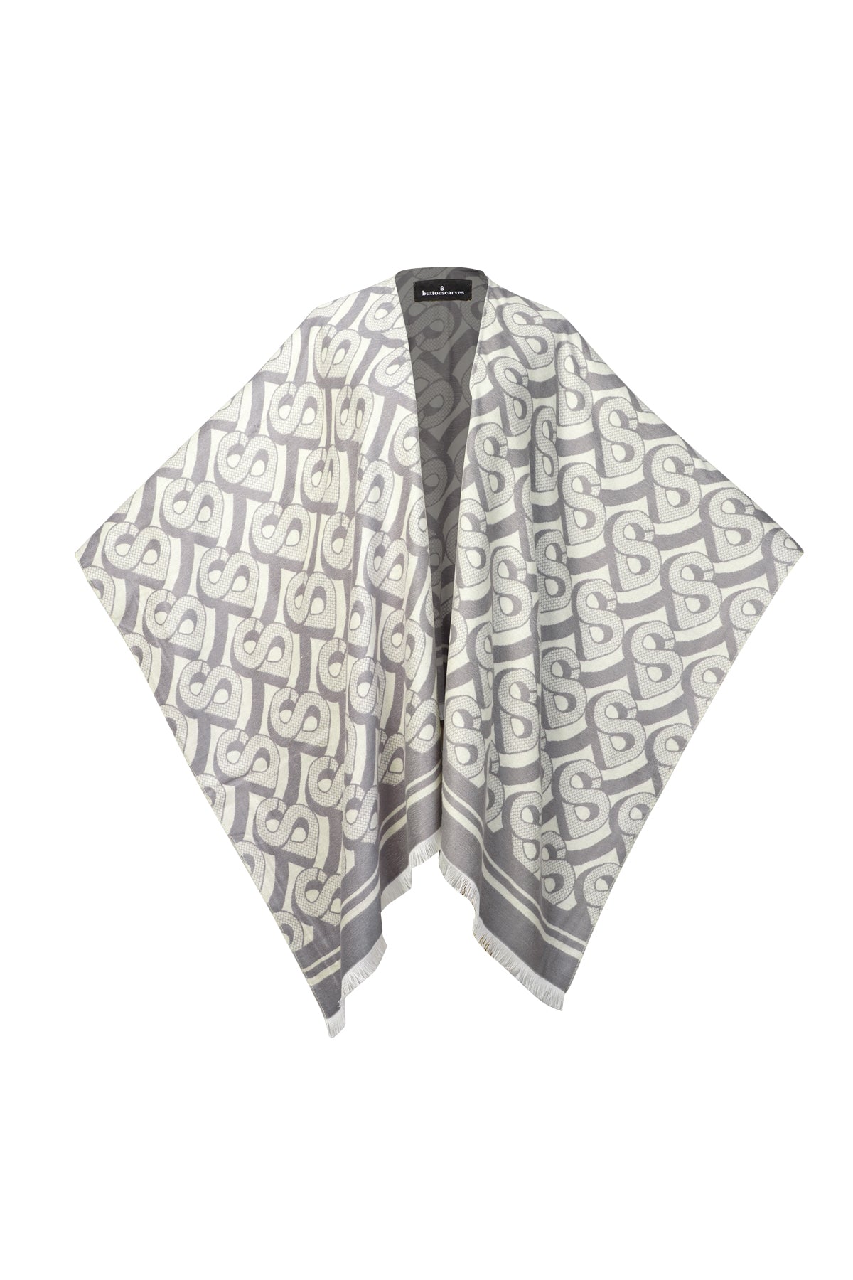 A statement piece that combines a draped construction, an open front, and frothy fringed edges. The cozy silhouette is enhanced by the Bimu monogram pattern, creating an elegant and comfortable layering option for any occasion.