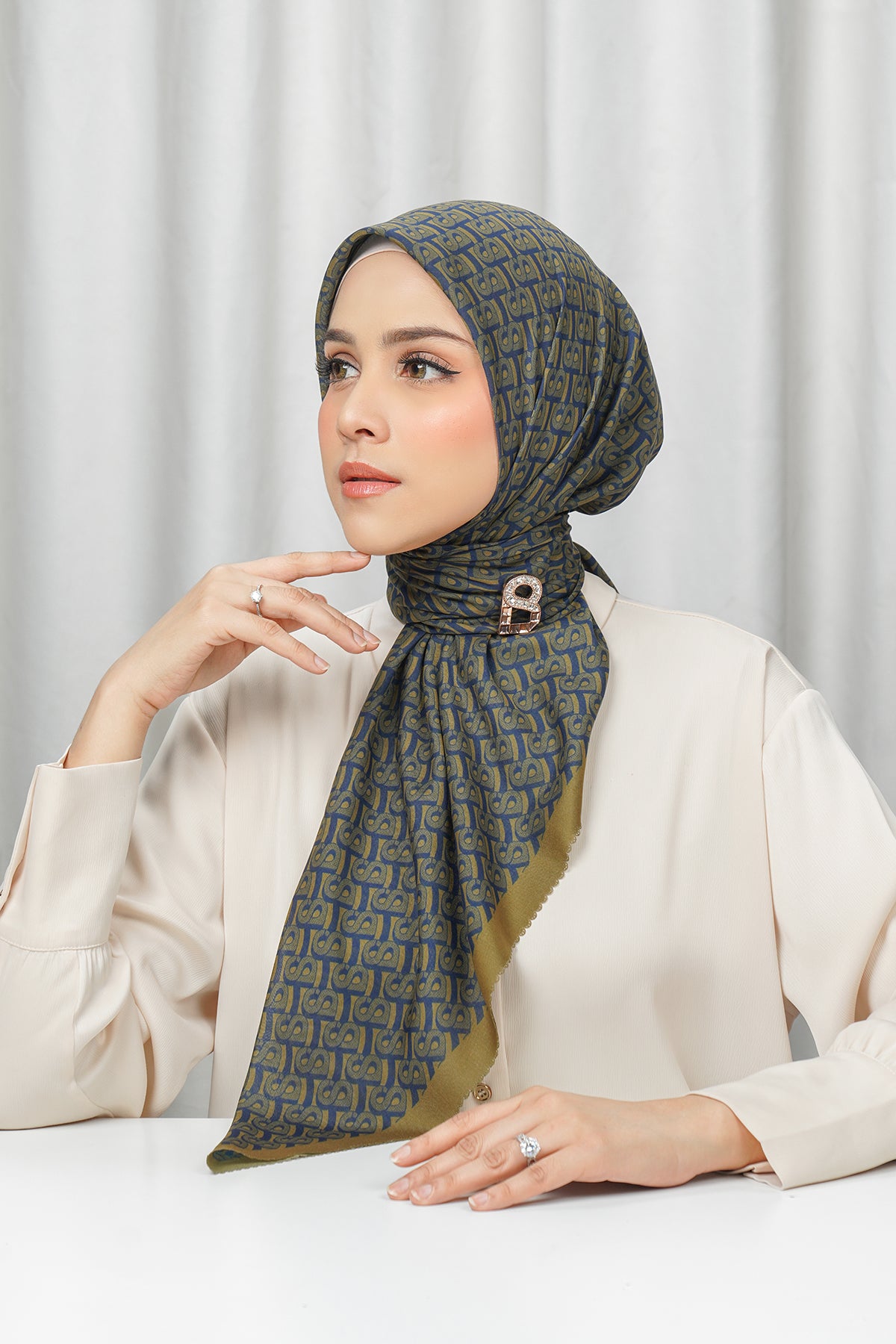 The new classic take on our monogram, this special scarf is reinforced with the Bimu Monogram motif. Defining both timeless and elegant, this piece with a touch of classiness and luxury to your daily wear.