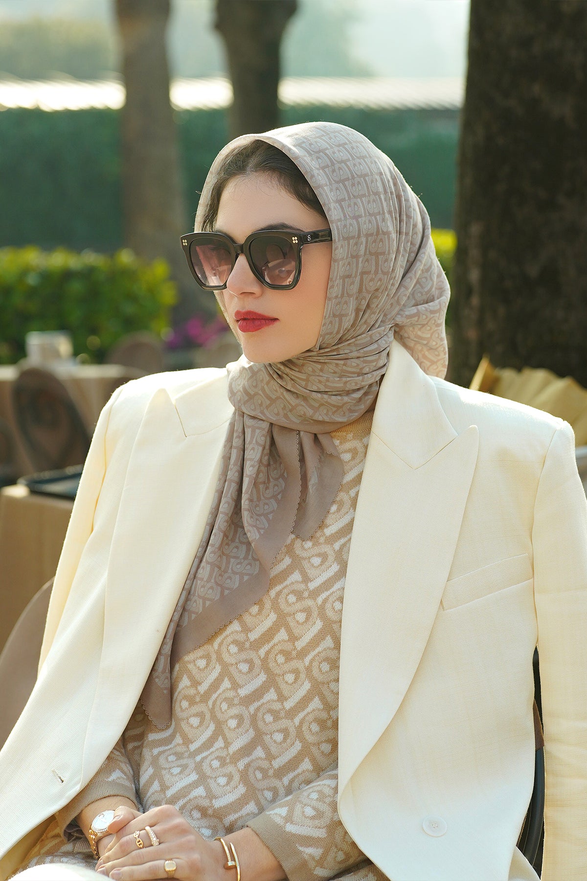 The new classic take on our monogram, this special scarf is reinforced with the Bimu Monogram motif. Defining both timeless and elegant, this piece with a touch of classiness and luxury to your daily wear.