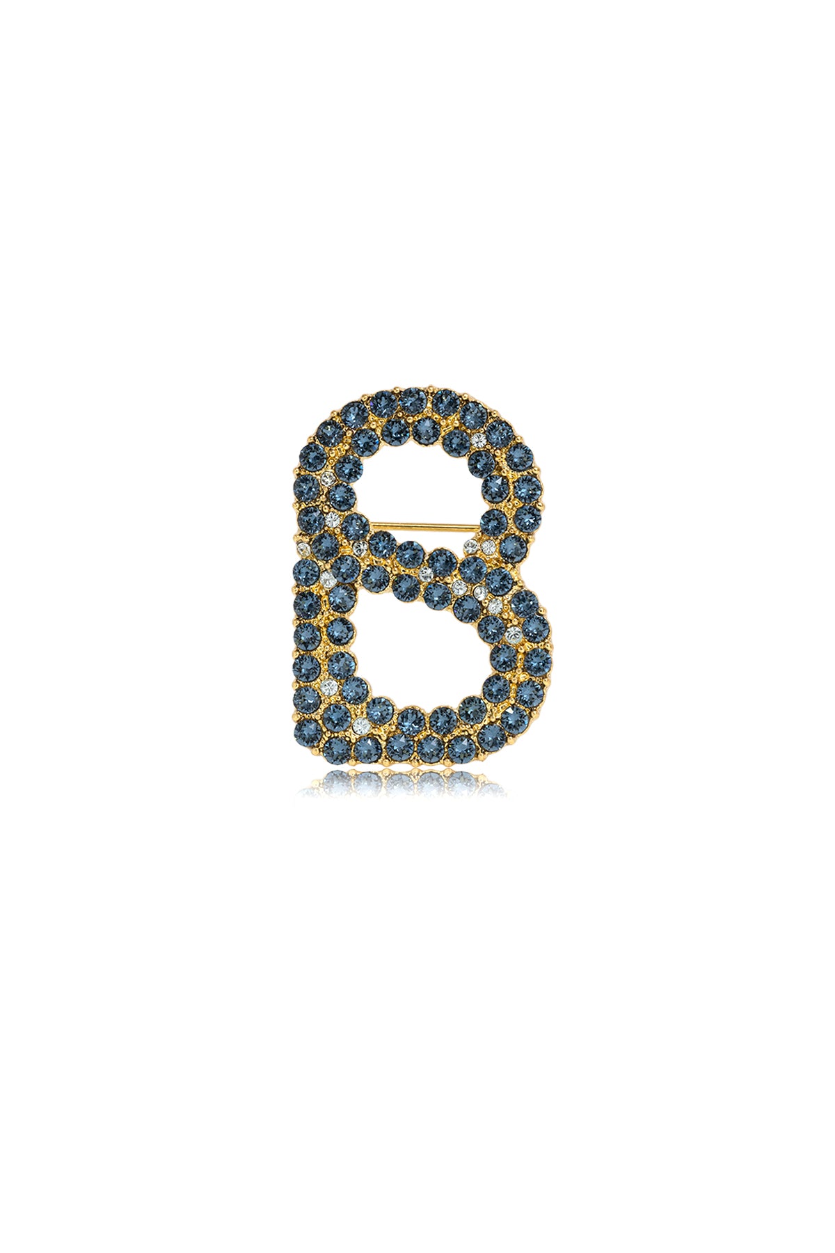 Elevate your daily look with this luxurious B-shaped brooch. This lovely piece of accessory is beautifully embellished with Swarovski crystal clear stones made of delicate brass and gold plated.
