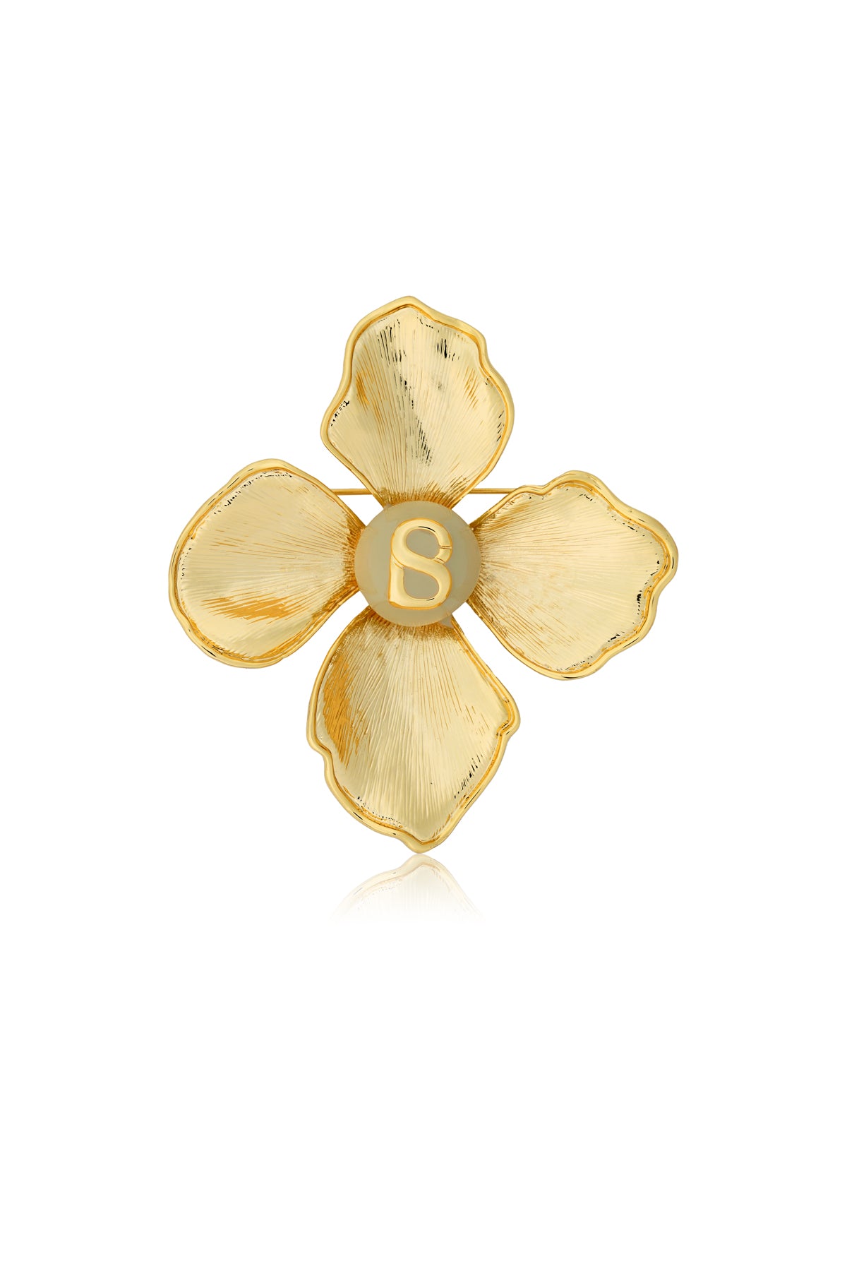 A striking accessory that demands attention with its large flower-shaped design. Crafted from brass and enamel paint, it showcases the iconic B logo at its center. Ideal for those who love making a bold statement effortlessly.
