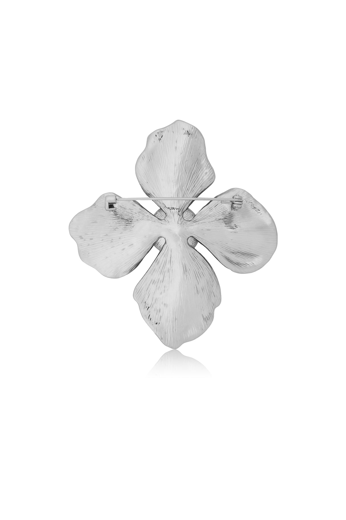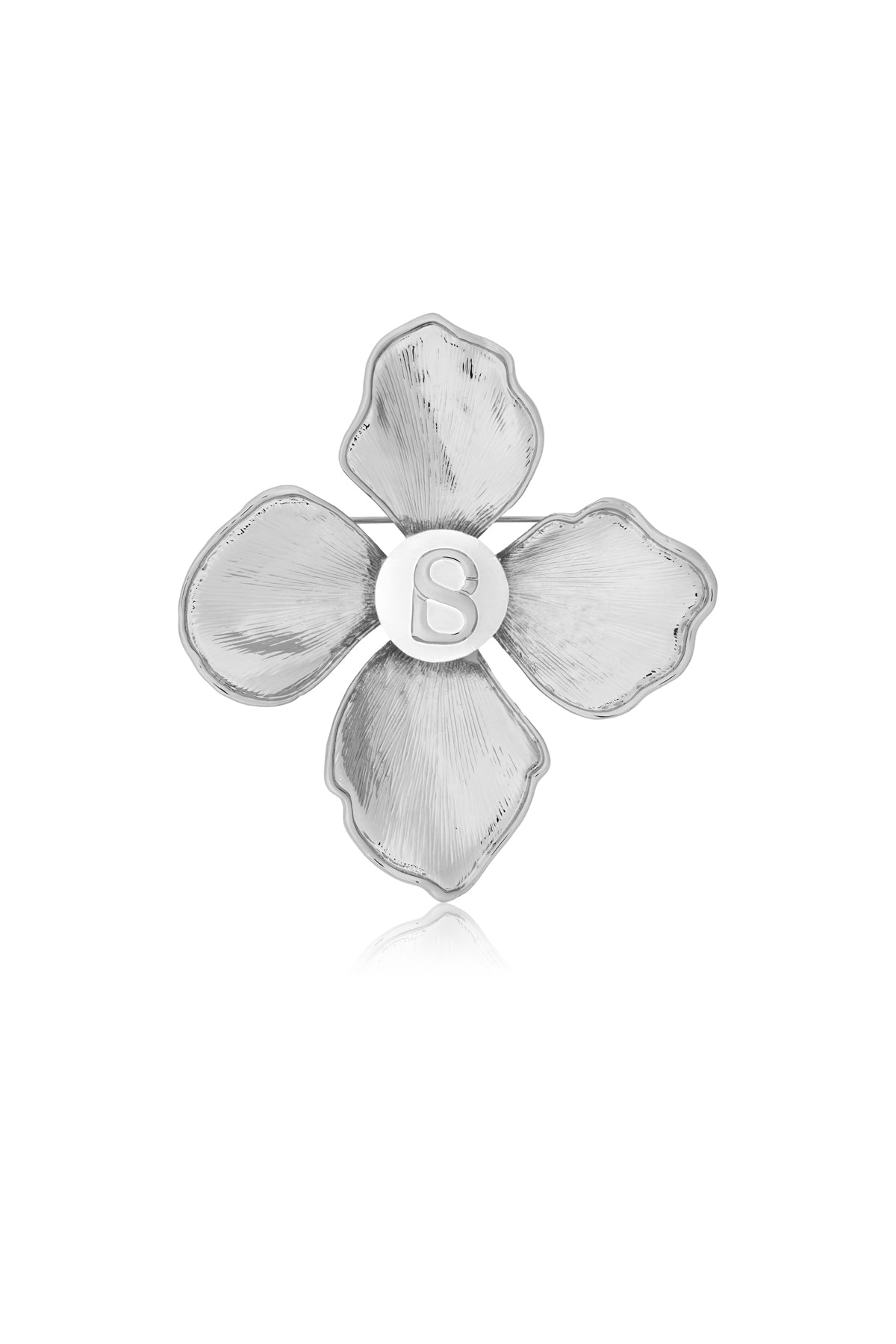 A striking accessory that demands attention with its large flower-shaped design. Crafted from brass and enamel paint, it showcases the iconic B logo at its center. Ideal for those who love making a bold statement effortlessly.