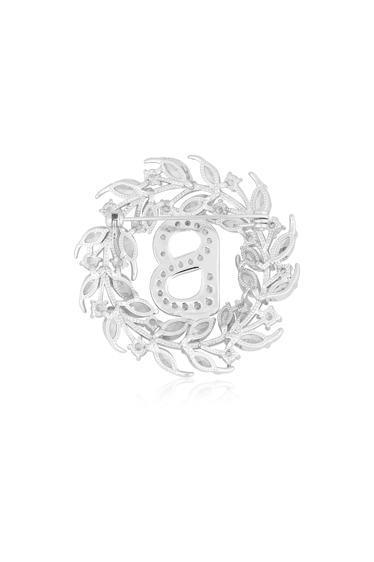 Inspired by nature, this brooch features a stunning design with circular leaves encircling a central B logo. It's adorned with large marquise-cut crystals along the full pave crystal logo, creating a beautifully intricate piece.