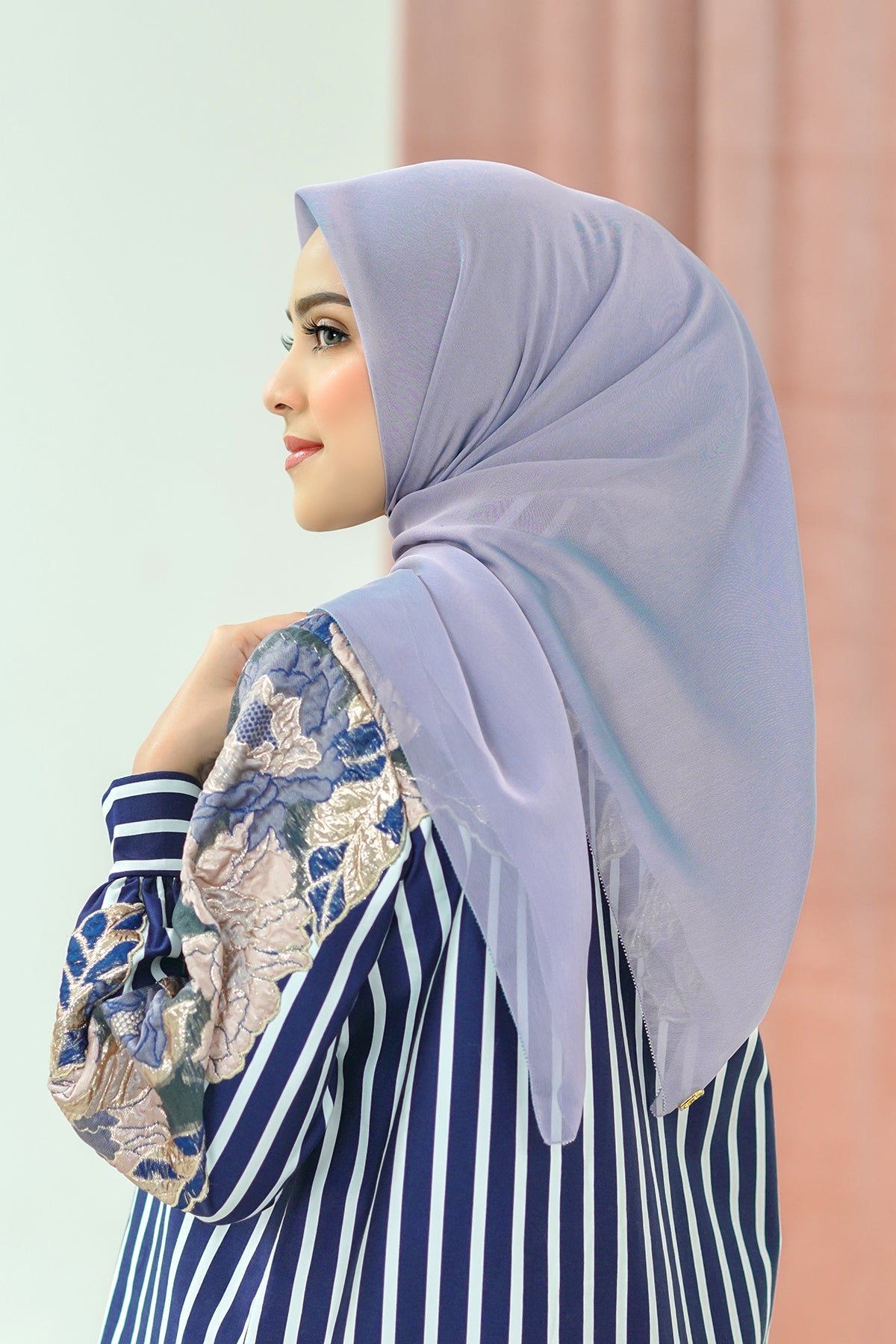 Made from a lightweight, airy, and breathable material, this scarf is soft and clasy and drapes effortless on your face. Available in an arrange of colors, making it your perfect go-to day to day scarf.