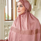 Adorned with beautiful lace trims, this prayer robe gives a delicate touch of beauty to your prayers. Crafted to be lightweight and cooling, it ensures comfort during prayers. It has an elasticized band at the back that caters to all face sizes, providing a perfect fit for everyone.