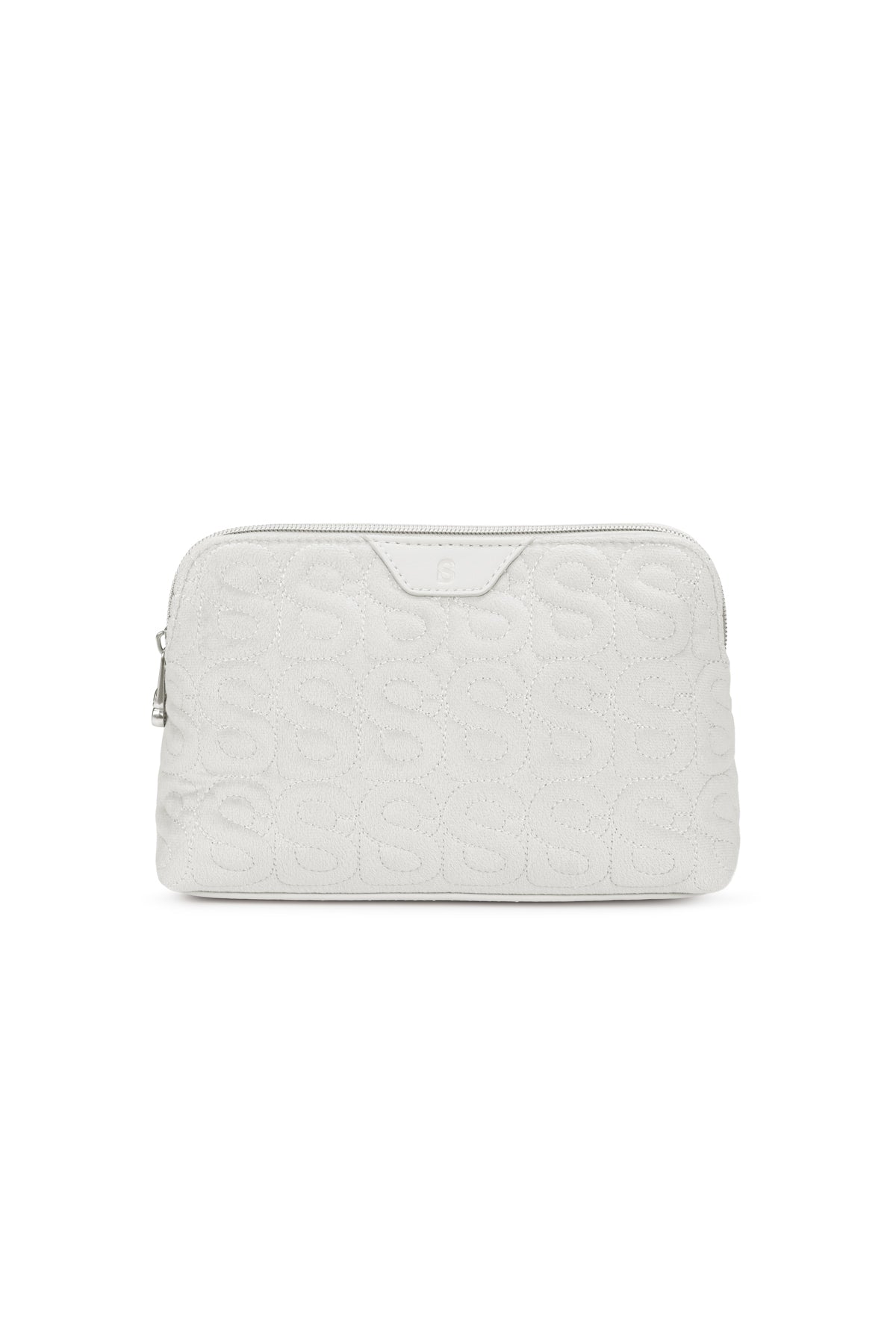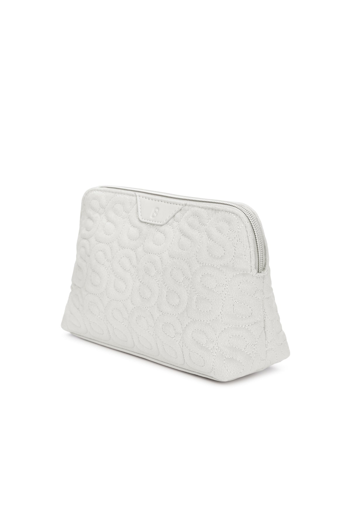 This luxurious and incredibly soft pouch is crafted from supple and lightweight fabric. It features a quilted signature B motif and is finished with a top trim showcasing an embossed B logo. The interior provides ample space for essentials and includes a secure zipper closure.