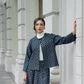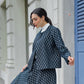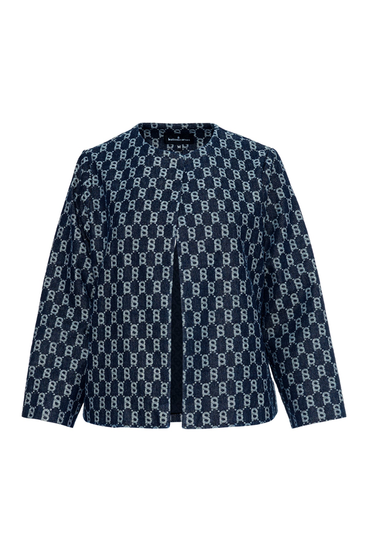 A stylish denim outerwear piece adorned with our signature B monogram print. This piece features an open front design with a single-button fastening strategically placed around the neckline, creating a chic and contemporary look.