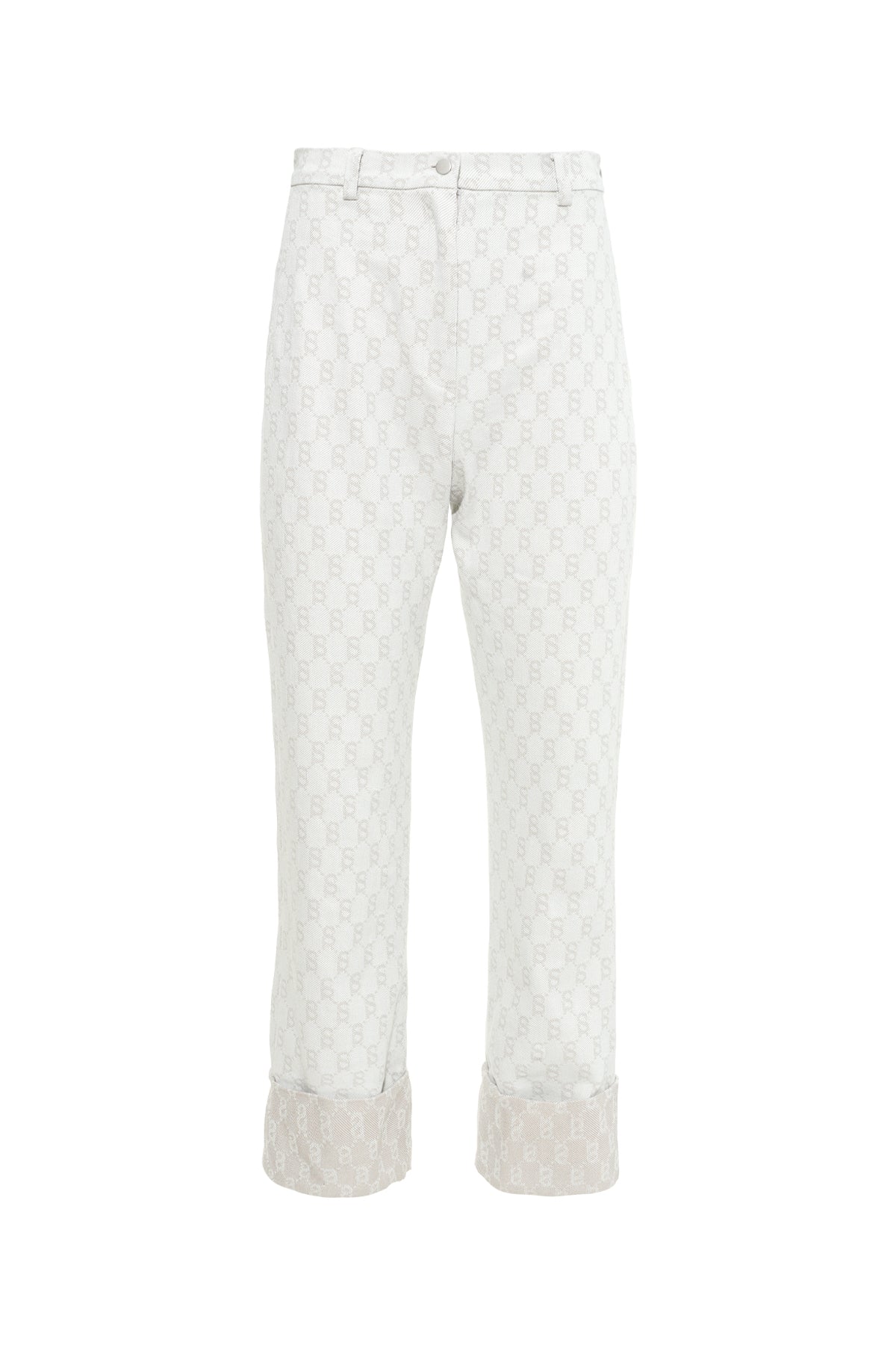 A denim piece adorned with signature B monogram print for a touch of sophistication. Crafted with a wide-legged silhouette and a stylish turn-up hem, these pants offer both comfort and style.
