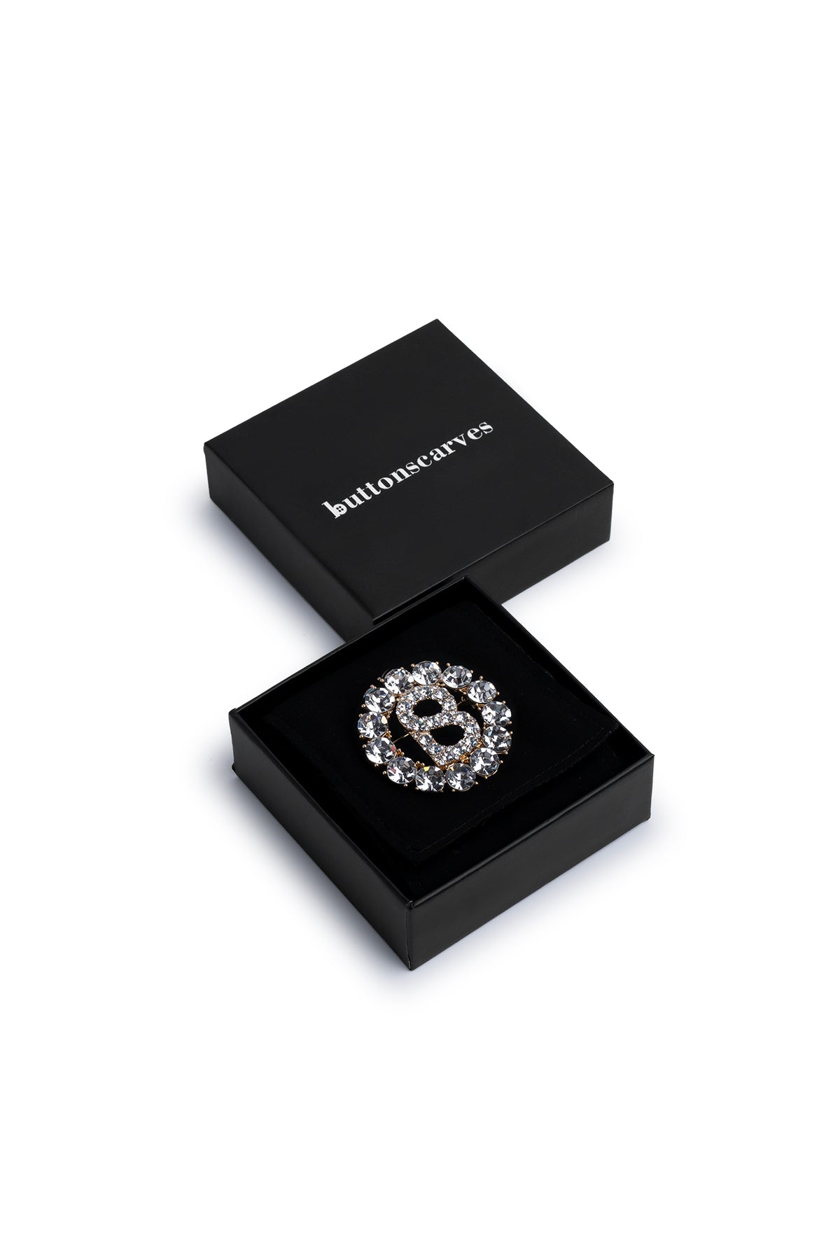 This enchantingly pretty rounded brooch is defined by the sparkling stones encircling the signature B in the middle. This statement accessory will add a charming and classy allure to any look.