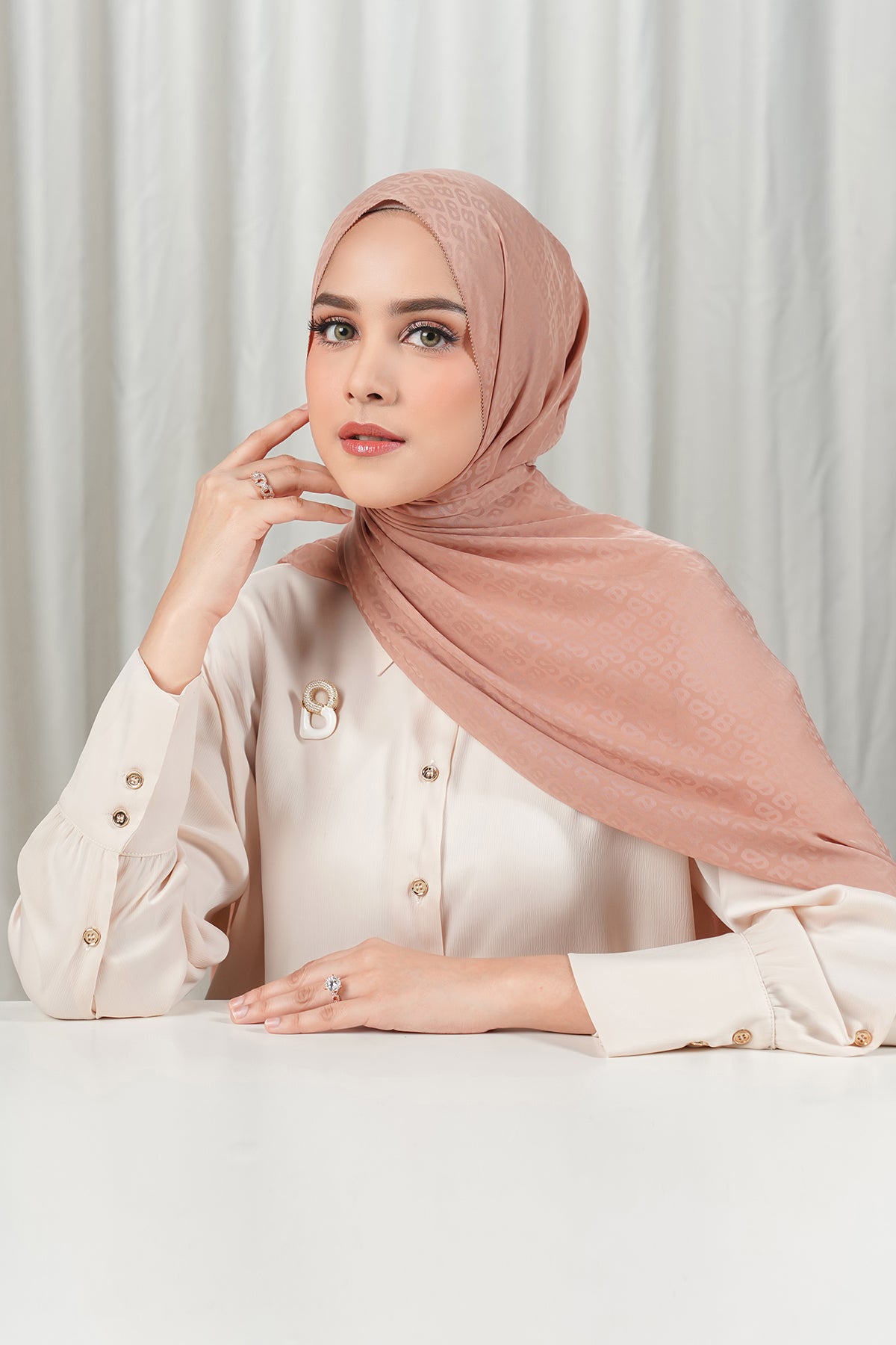 Tapis Satin Jacquard Shawl - Café au Lait
