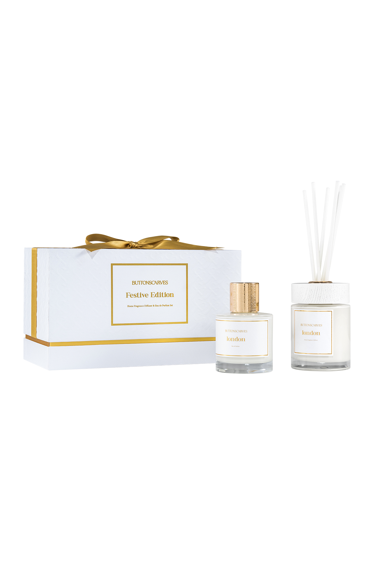 Buttonscarves Festive Edition Set is made for festive moments and Raya gifting. Featuring a signature Eau de Parfum (85 ml) and Home Fragrance Diffuser (150 ml) with reed sticks, all wrapped in an elegant, ready-to-gift packaging.