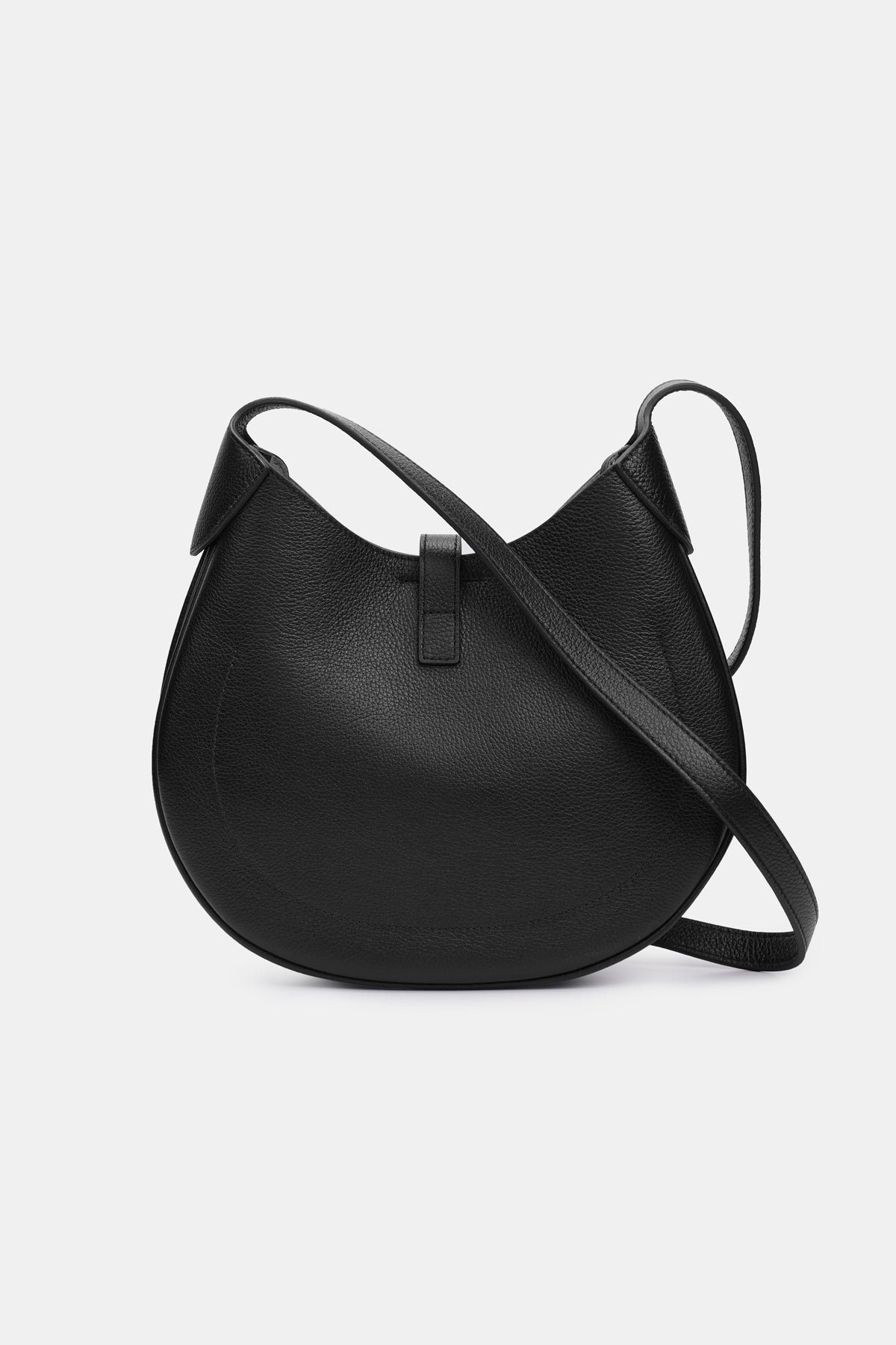 This bag features a sleek, crescent-shaped silhouette that offers ample space for your essentials. Made from high-quality cow leather, this chic bag is designed with a secure B-loop closure and fixed crossbody strap, making it perfect for those on the go.