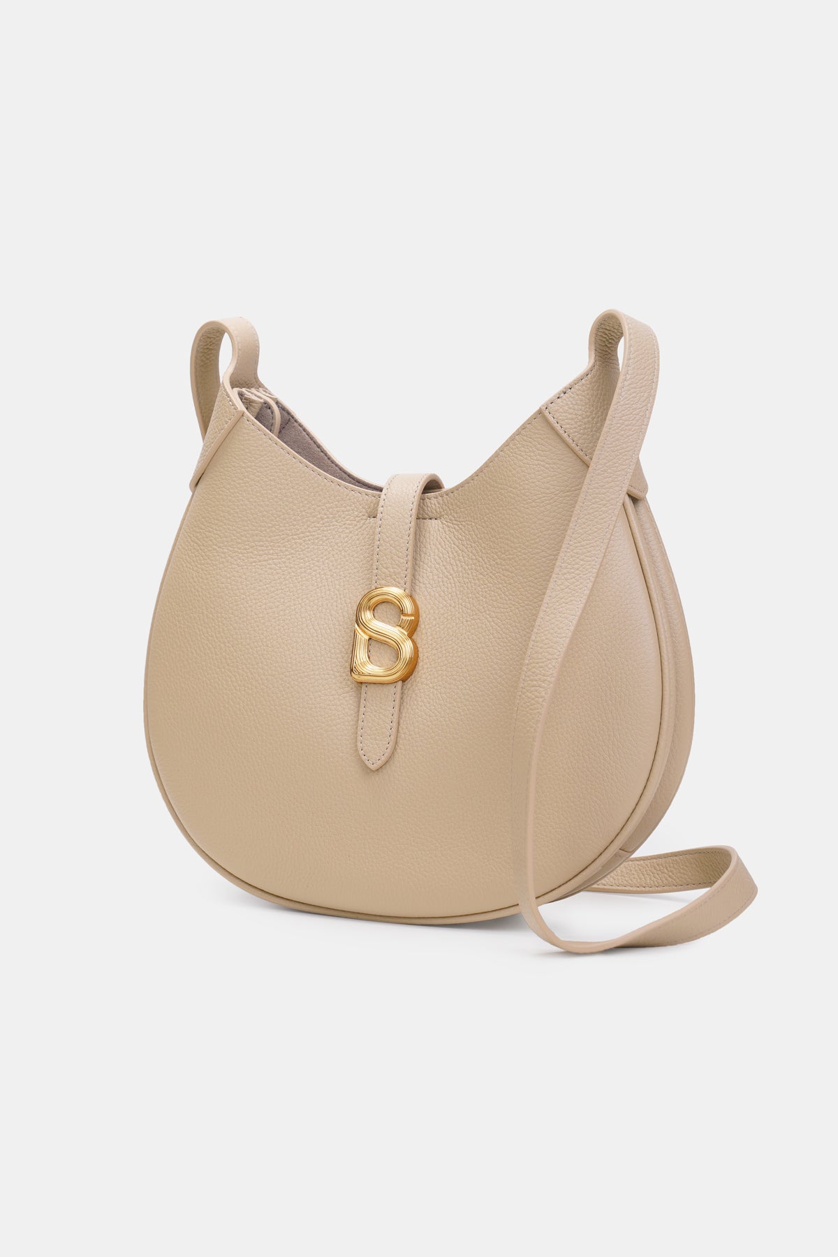 This bag features a sleek, crescent-shaped silhouette that offers ample space for your essentials. Made from high-quality cow leather, this chic bag is designed with a secure B-loop closure and fixed crossbody strap, making it perfect for those on the go.