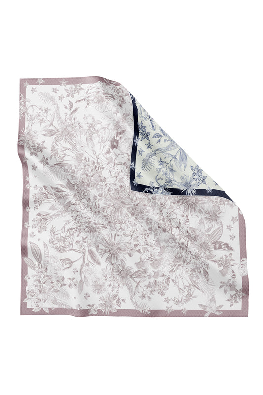 Silk Jacquard Square - Toile de Jouy Blooming Navy & Amethyst