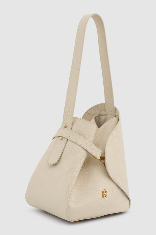 The new sophisticated leather bag with a distinct shape boasts spaciousness, classiness, and luxury.