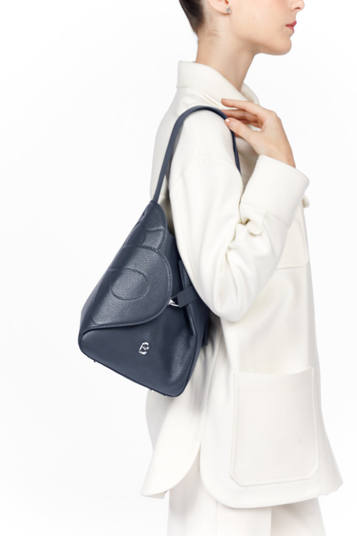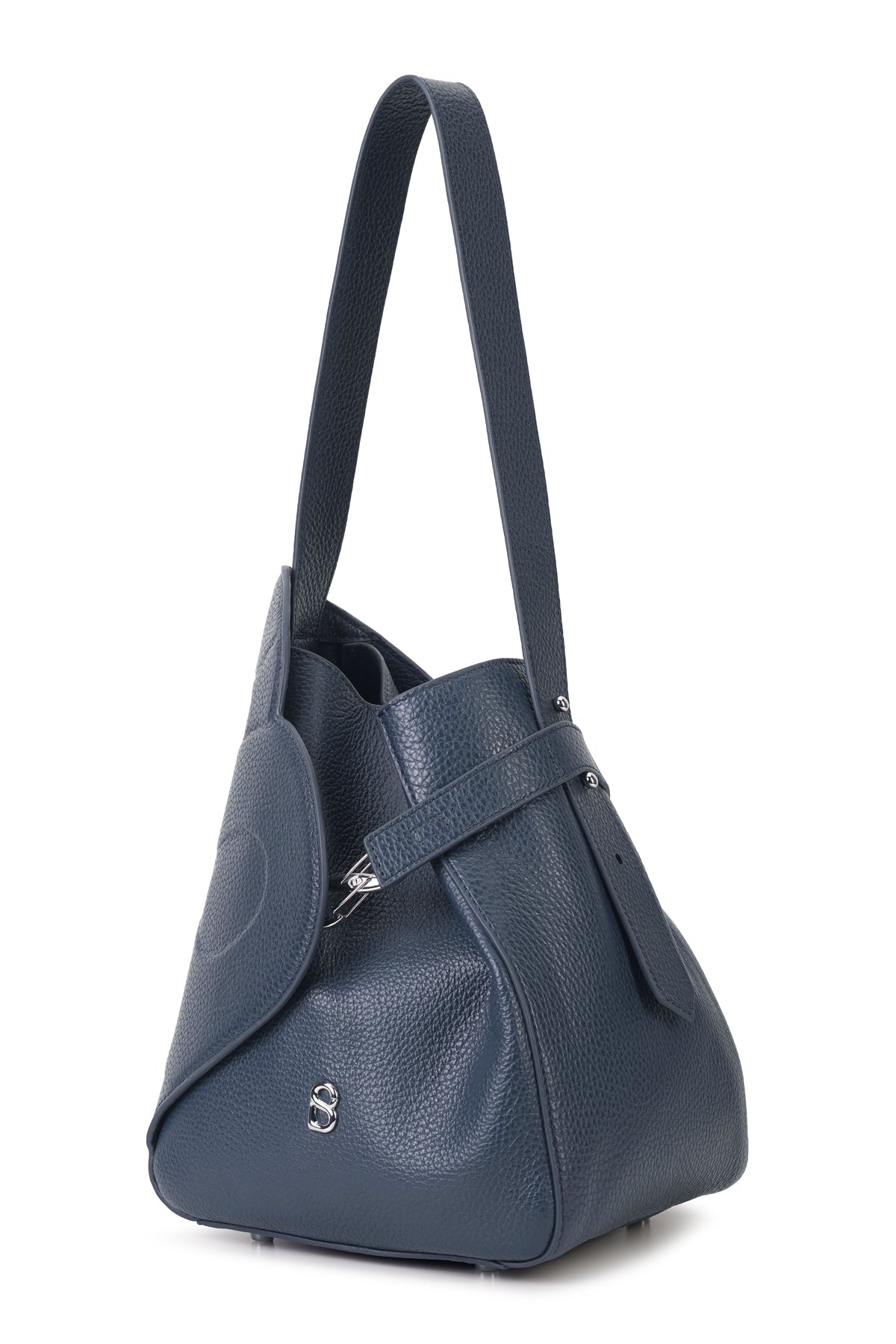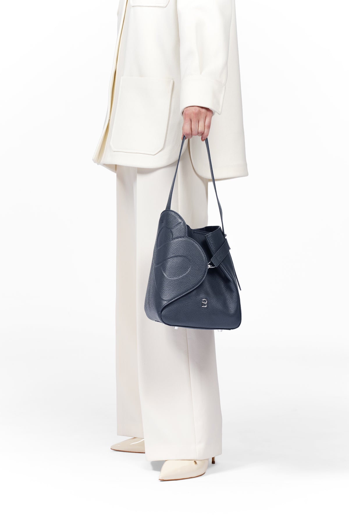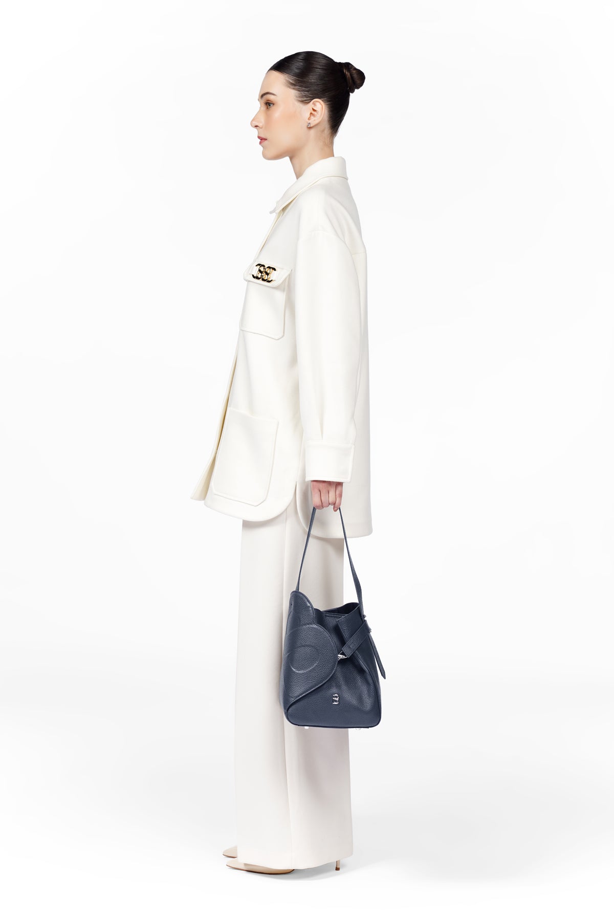 Meticulously crafted from high-quality Italian cow leather. Designed in a folded style bucket bag silhouette, embellished with the embossed signature B logo, this piece exudes sophistication and elegance.