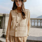 Crafted from a comfortable material, this sleeveless vest features a signature gold B button closure for a touch of sophistication. With its square collar and front flap pocket, it’s a perfect blend of functionality and chic design.