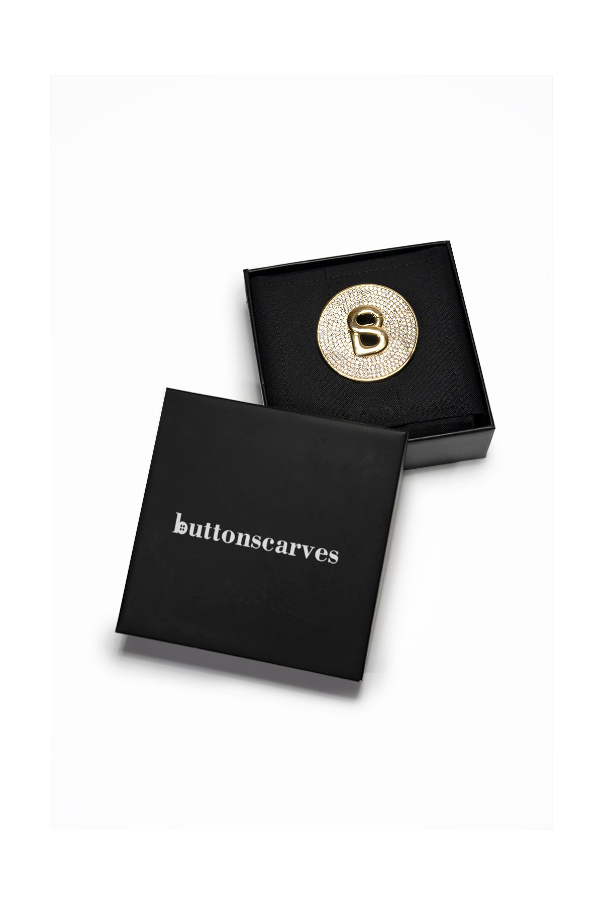 This rounded frame statement-making brooch features brilliant and sparkling crystal accents with the signature B-Logo in the middle. Made from delicate brass to be a lively classic addition to your everyday look.
