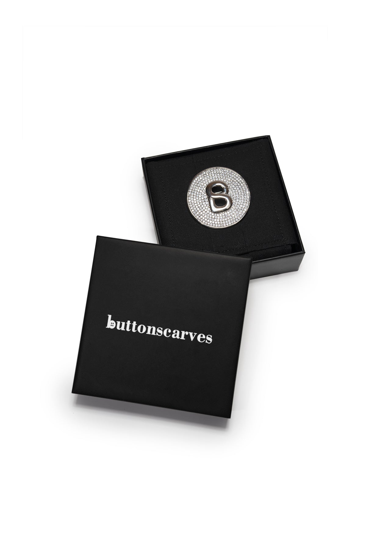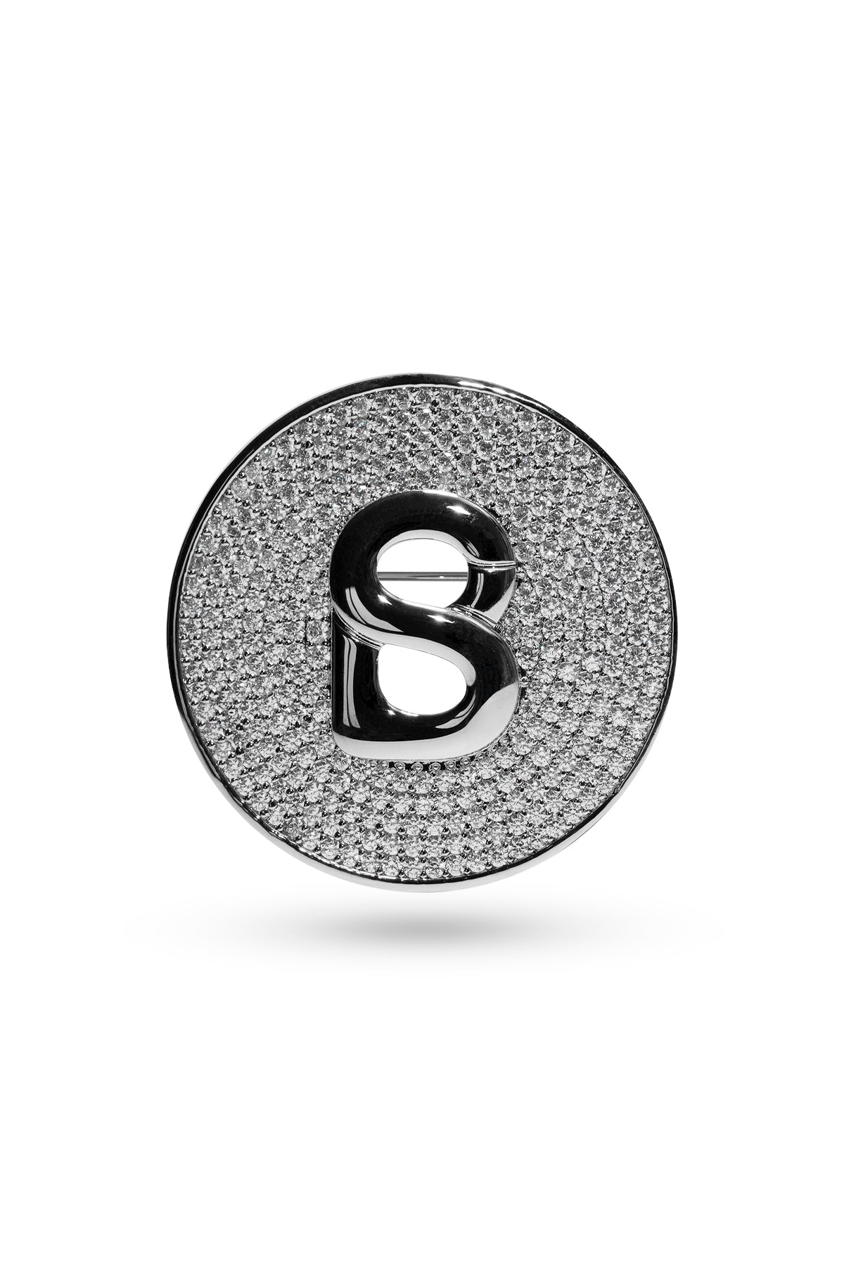 This rounded frame statement-making brooch features brilliant and sparkling crystal accents with the signature B-Logo in the middle. Made from delicate brass to be a lively classic addition to your everyday look.