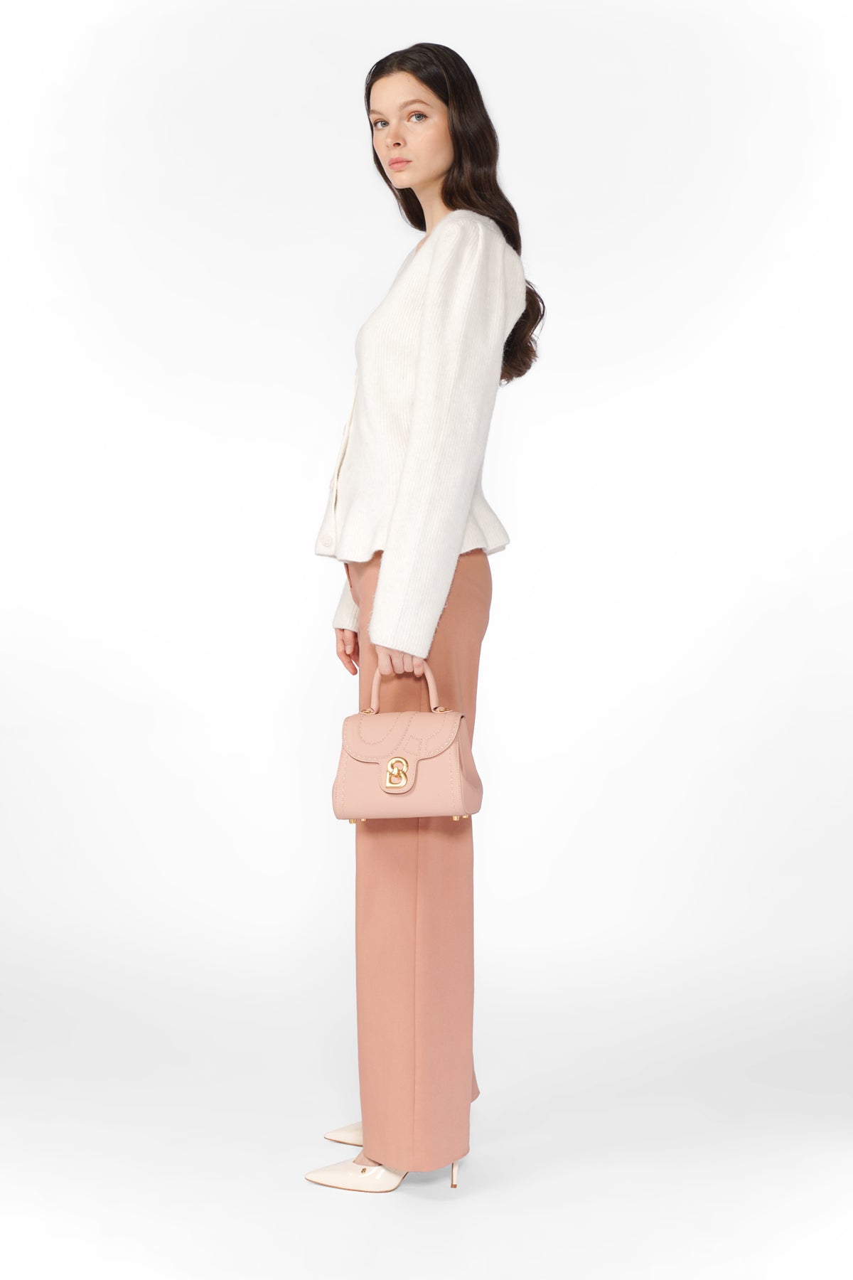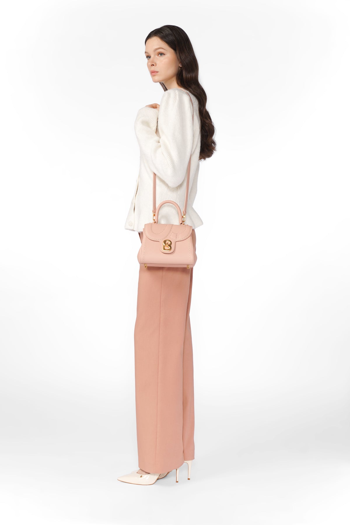 Crafted from Italian leather, this bag features an embossed B logo on the flap, contrast hand-stitching, and a distinctive B lock closure. Designed for versatility, it includes a detachable strap for different carrying styles.