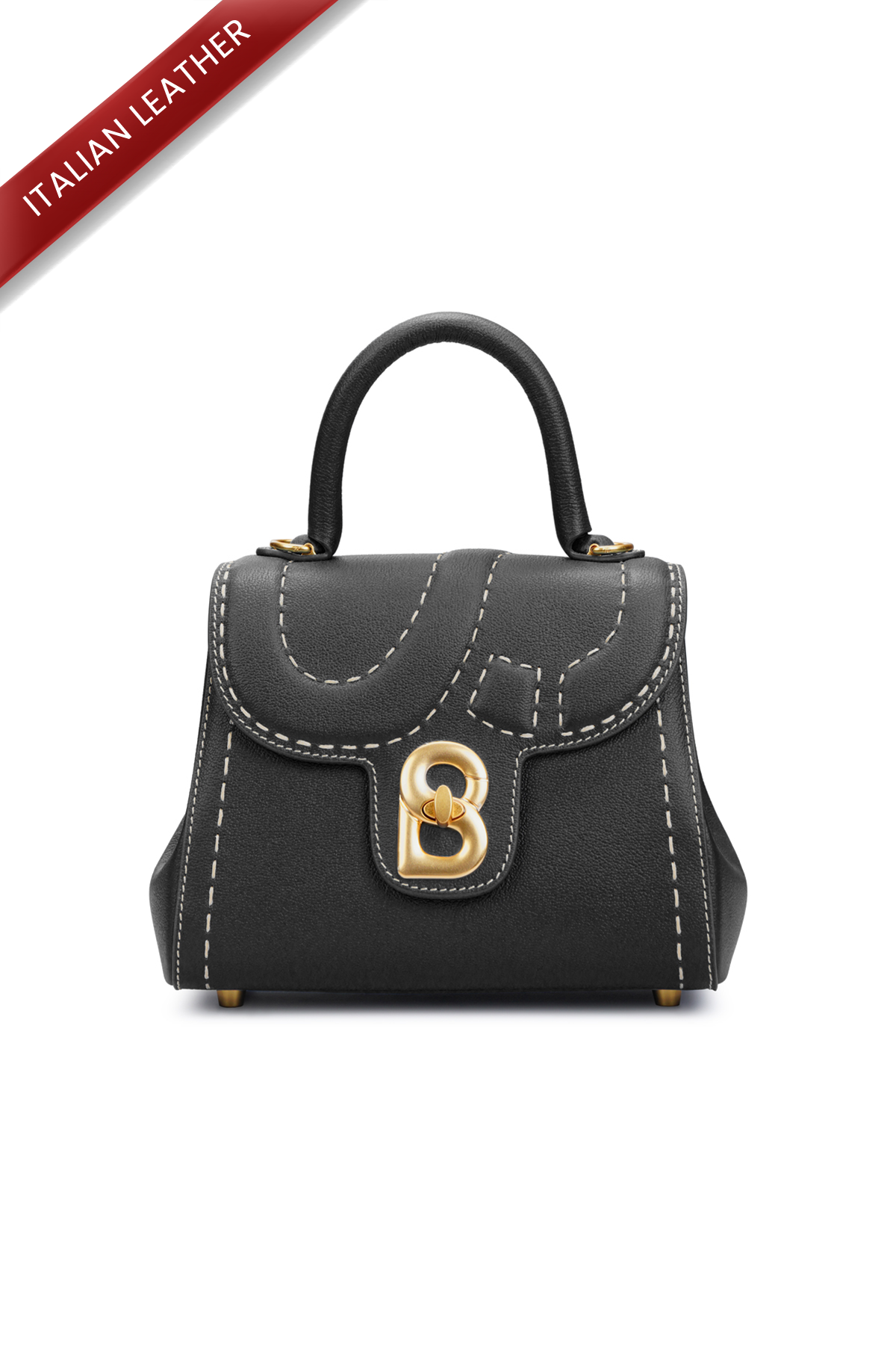 Crafted from Italian leather, this bag features an embossed B logo on the flap, contrast hand-stitching, and a distinctive B lock closure. Designed for versatility, it includes a detachable strap for different carrying styles.