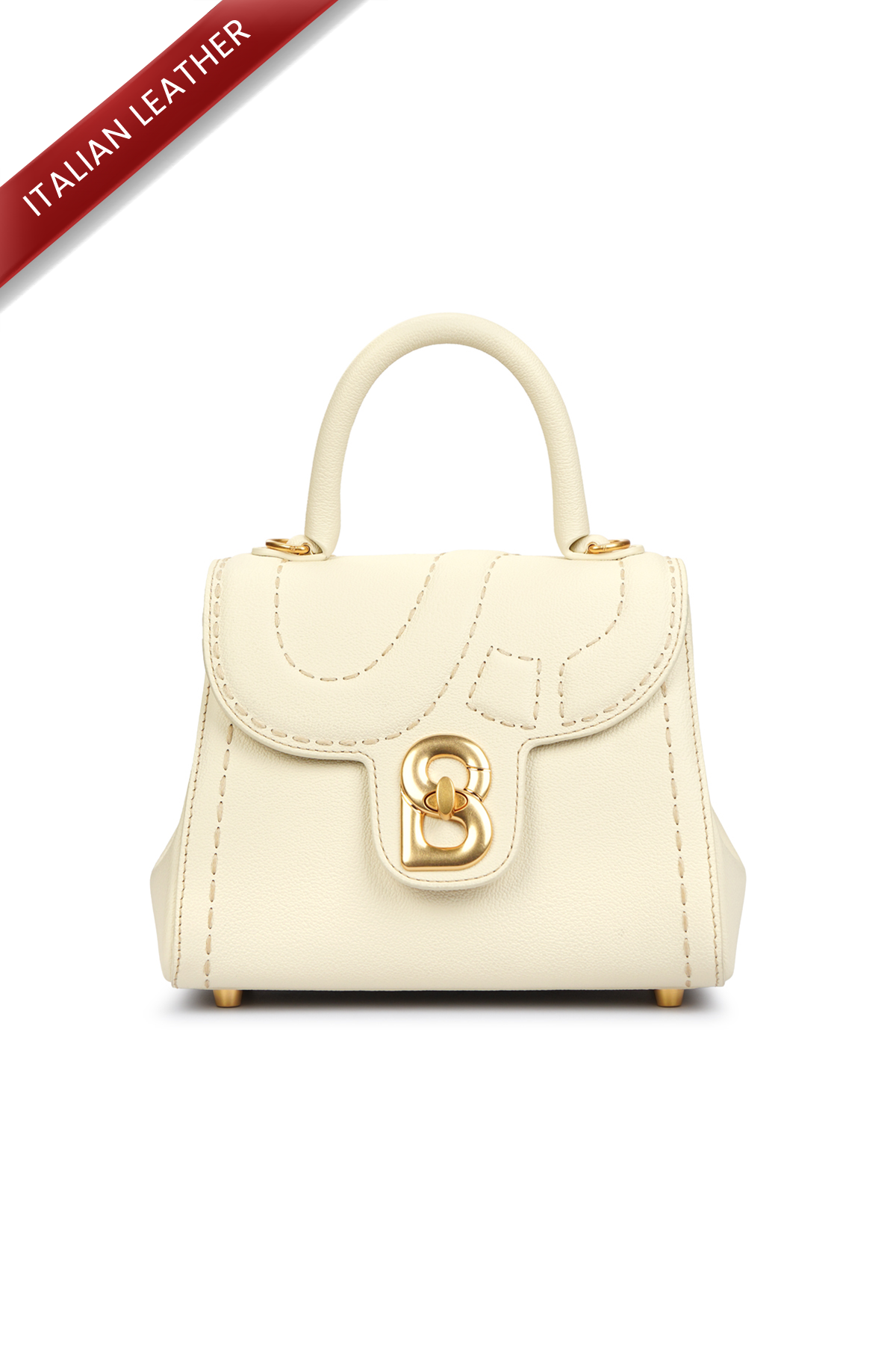 Crafted from Italian leather, this bag features an embossed B logo on the flap, contrast hand-stitching, and a distinctive B lock closure. Designed for versatility, it includes a detachable strap for different carrying styles.