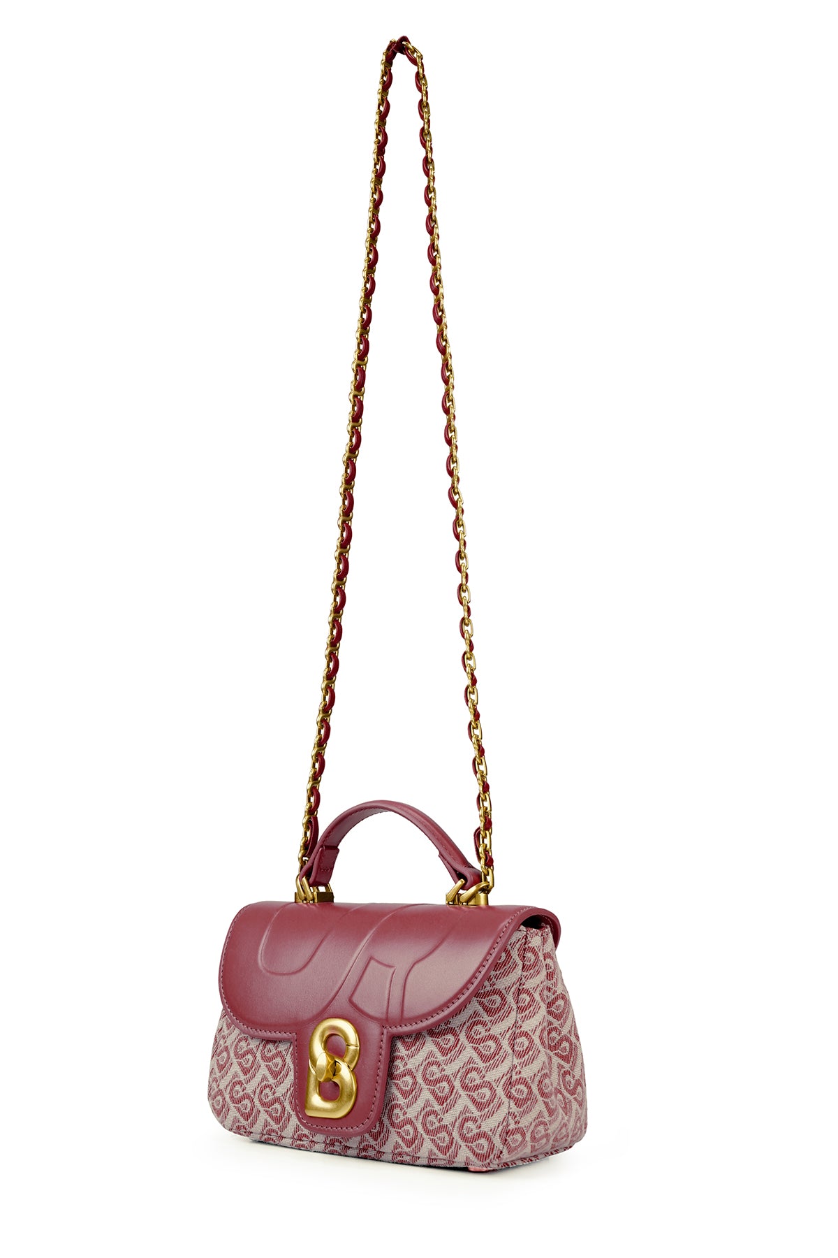 Embodies a harmonious blend of mixed fabric and luxurious cow leather, this bag is adorned by the Bimu Monogram motif. Its flap top is embellished with an embossed signature B. Versatile and chic, this bag effortlessly complements various outfits and occasions.