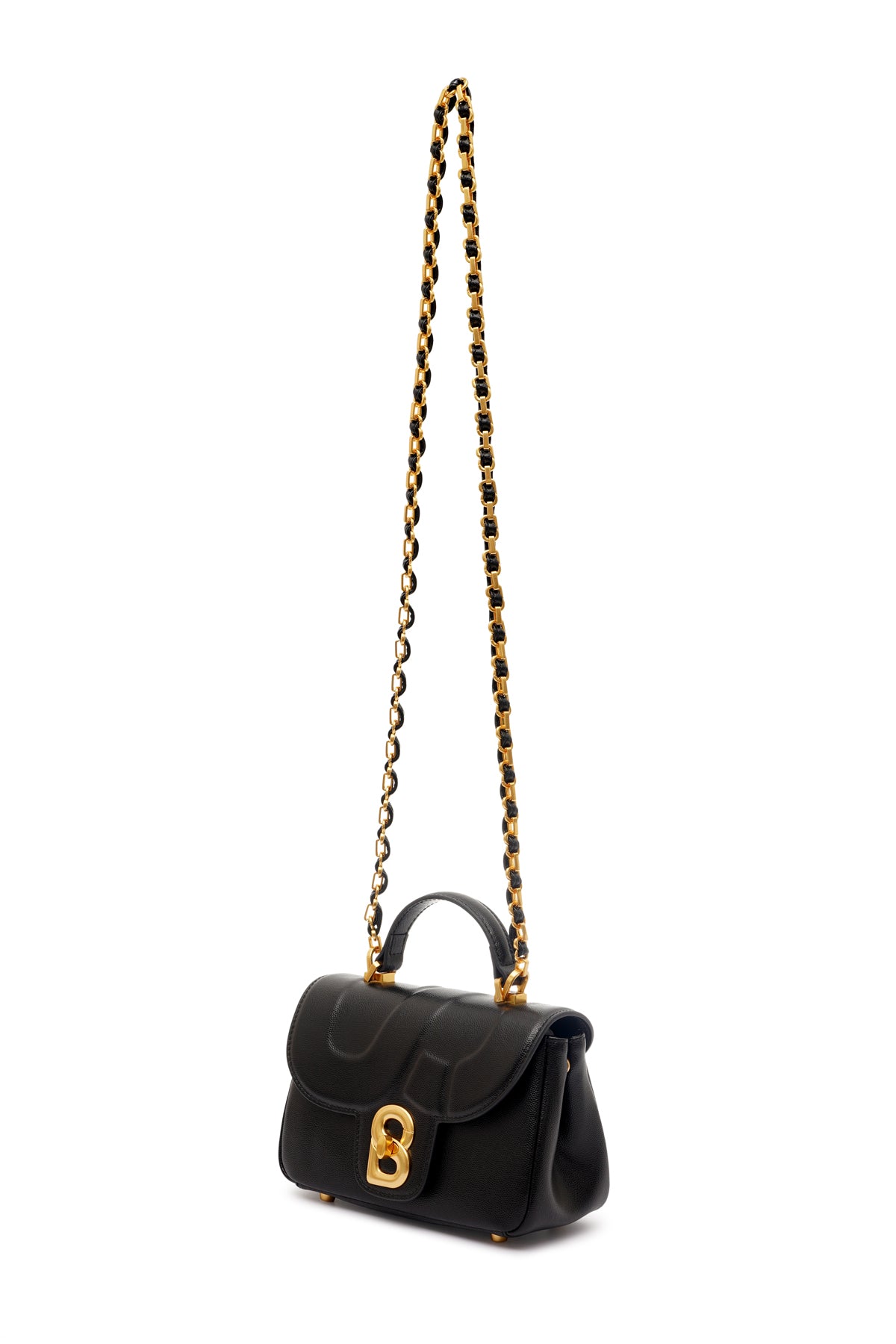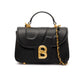 Now meticulously crafted from cow leather, its unique and timeless design features a distinctive flap and gold hardware opening shaped like the signature B logo. Enhanced with a top handle and a stylish chain, this bag exudes elegance.