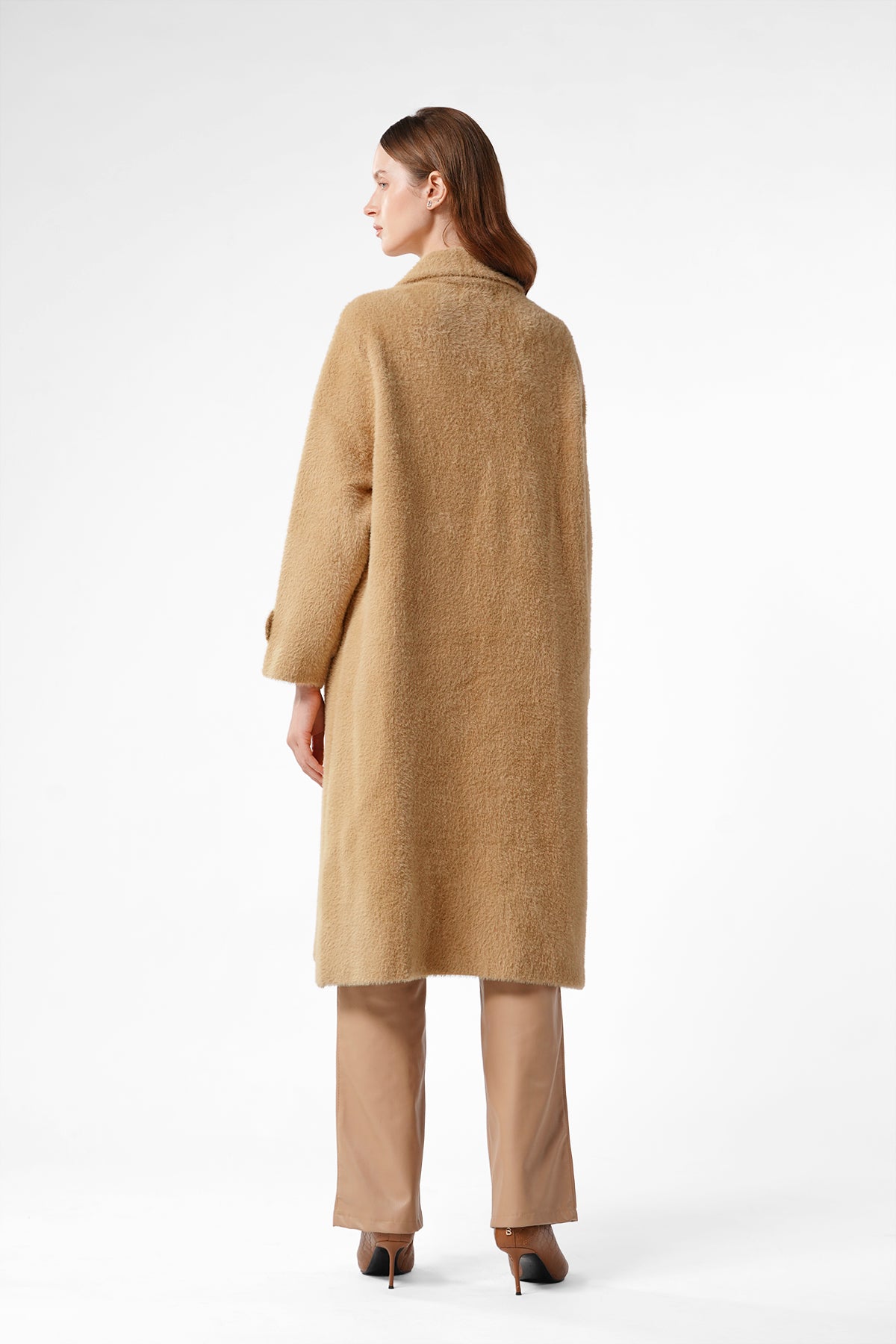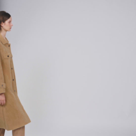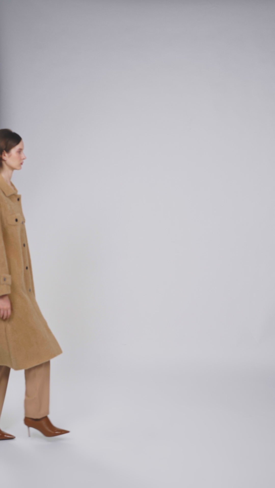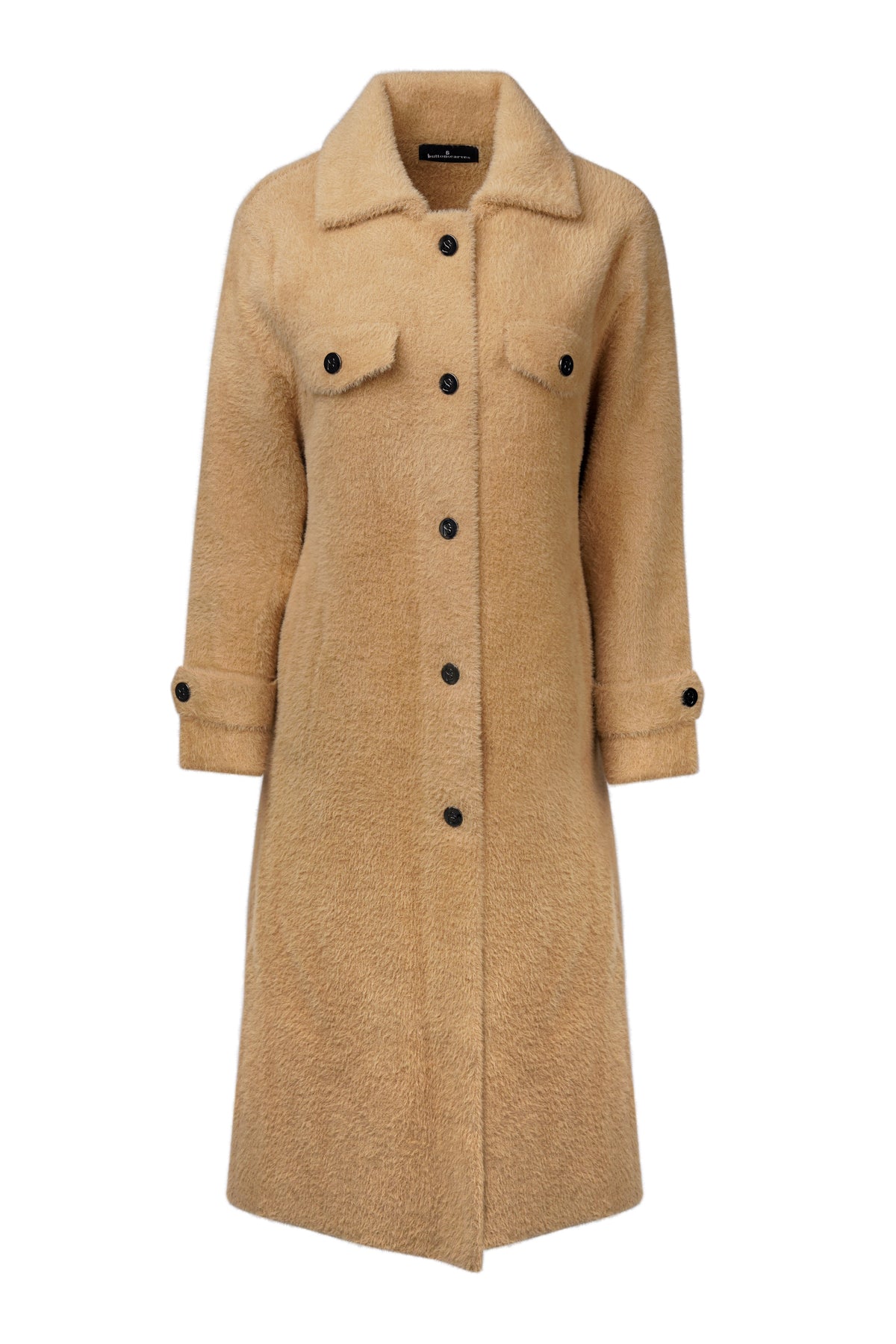 Crafted from a soft and textured fabric that offers both comfort and sophistication, this coat features an edgy collar, front button closures, and dual chest pockets with button accents, adding a refined touch to its elegant design. Perfect for a layered look, this piece brings a chic, polished finish to any outfit.