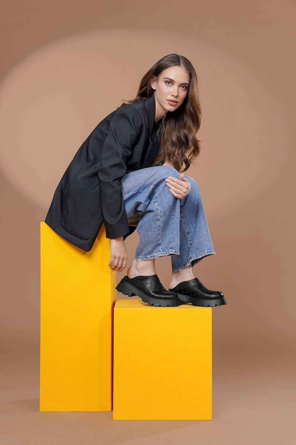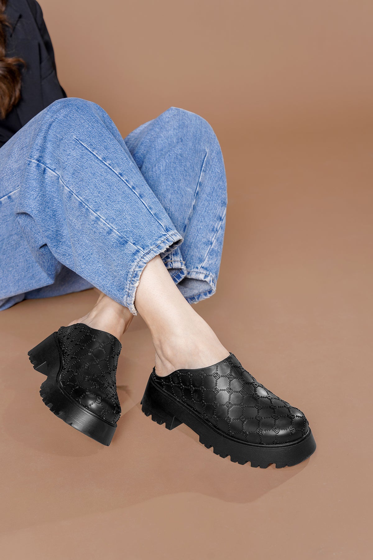 Crafted from 100% PVC for a sleek and modern look. With chunky proportions and a 6 cm height, these platform sandals offer both style and comfort. It's presented with an embossed signature Beverly monogram on top which adds a touch of elegance to the design.