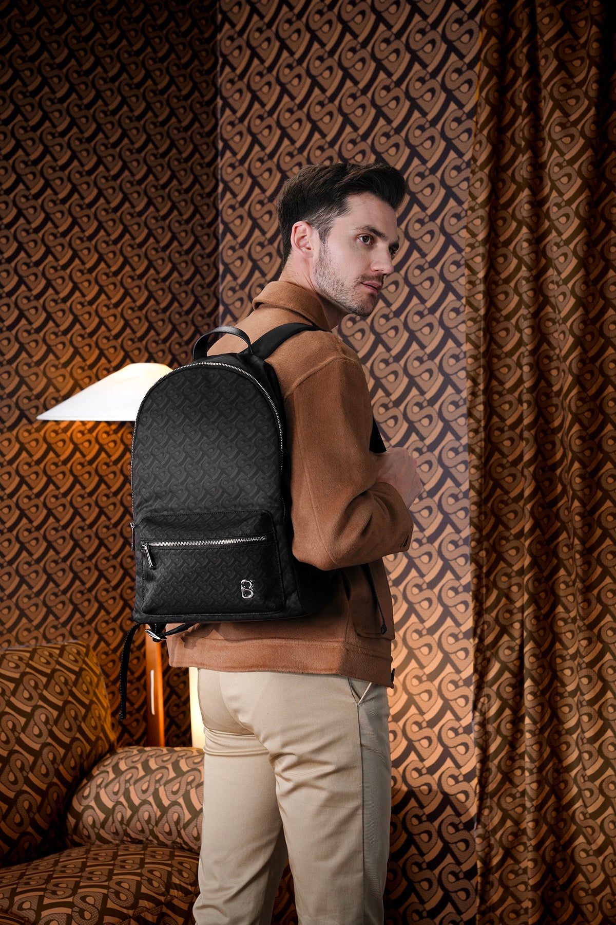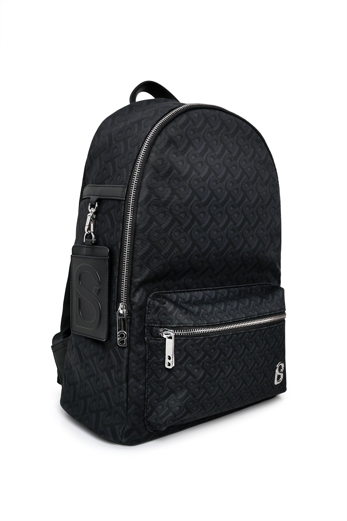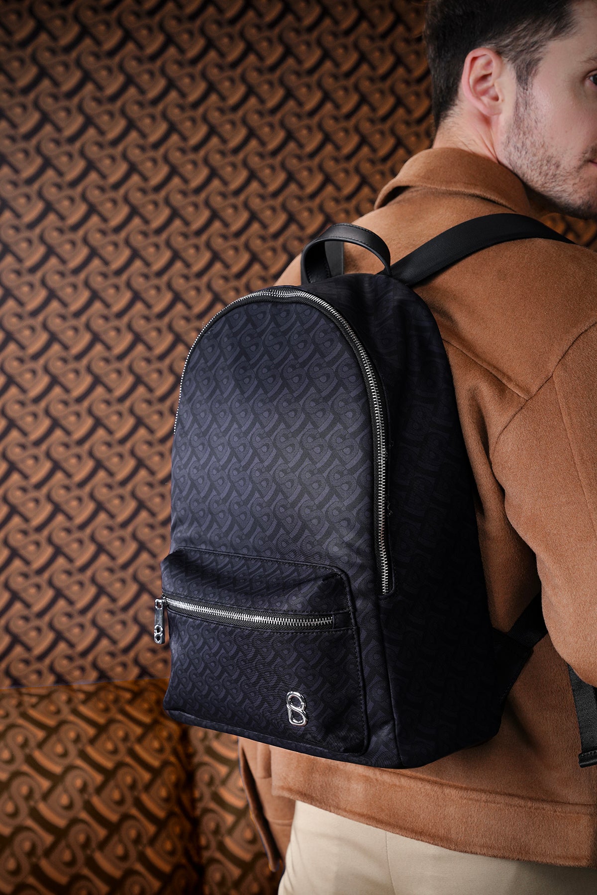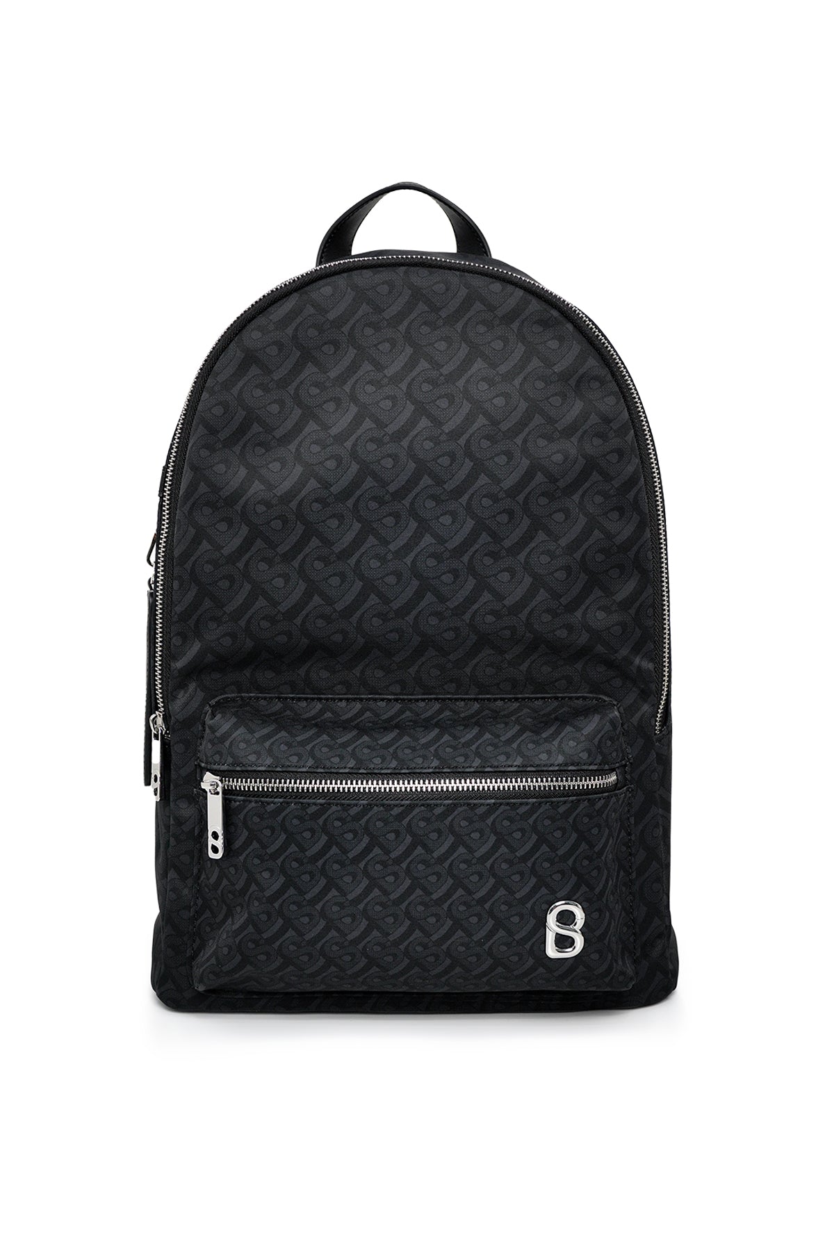 Adorned with the signature Bimu monogram pattern and a striking front zip-up pocket featuring the iconic B logo, this backpack is a symbol of both luxury and practicality. Its secure top zip fastening and rounded handle ensure easy access and convenience.