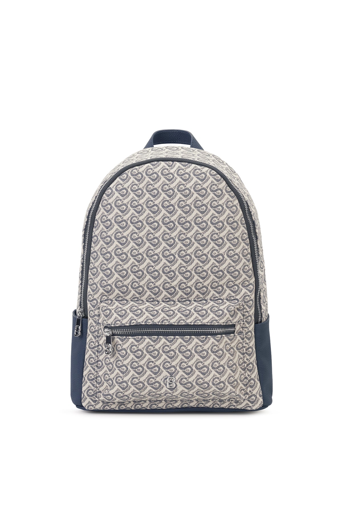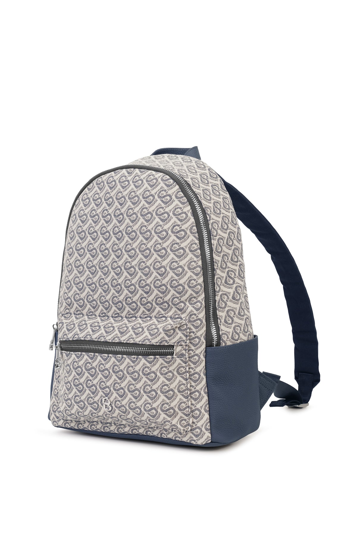 Crafted from durable jacquard fabric and cow leather with Bimu monogram prints, this bag is designed to complement your daily needs. A zip closure, a large zip pocket in front as well as adjustable padded straps are key details that make this a quintessential bag for both adults and kids.