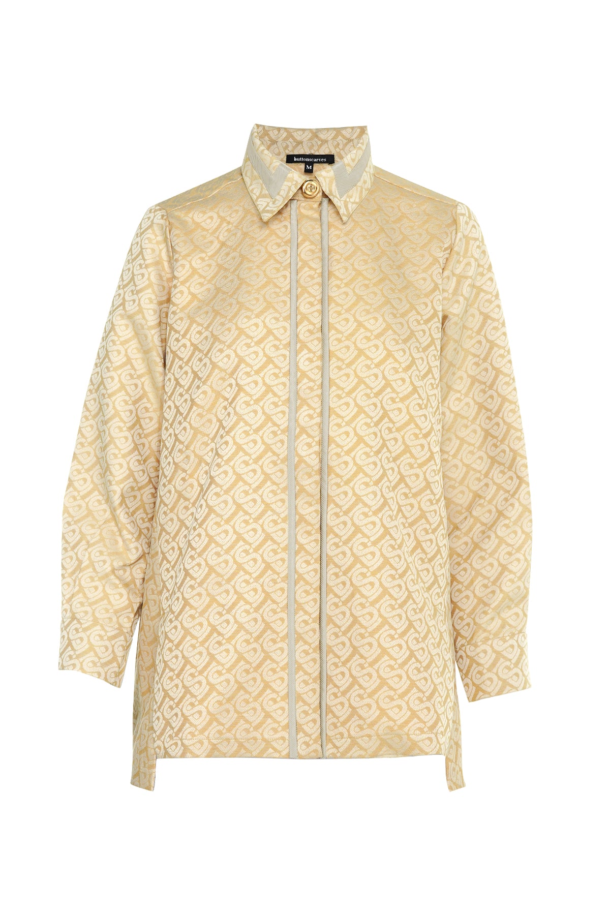 This shirt showcases the iconic Bimu monogram pattern, adding a touch of sophistication to your outfit. With a loose and elegant silhouette, it offers a relaxed fit that embodies understated elegance.