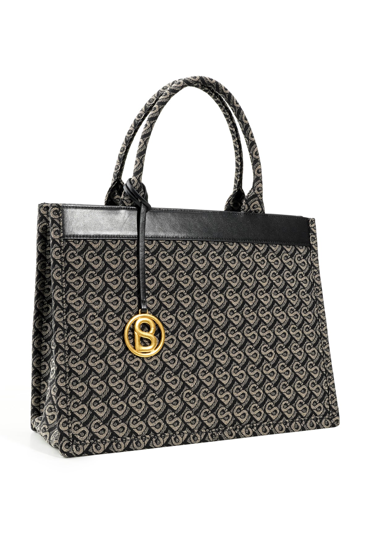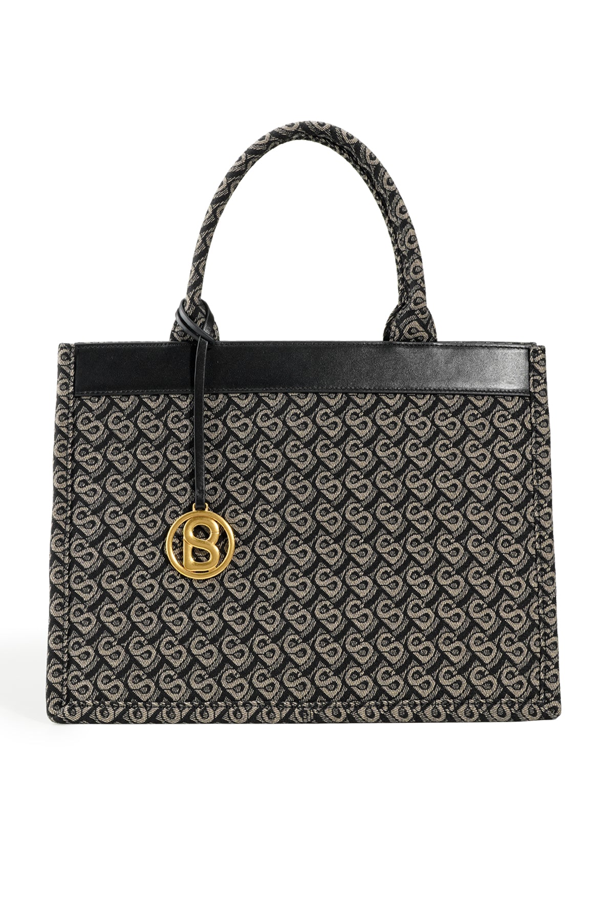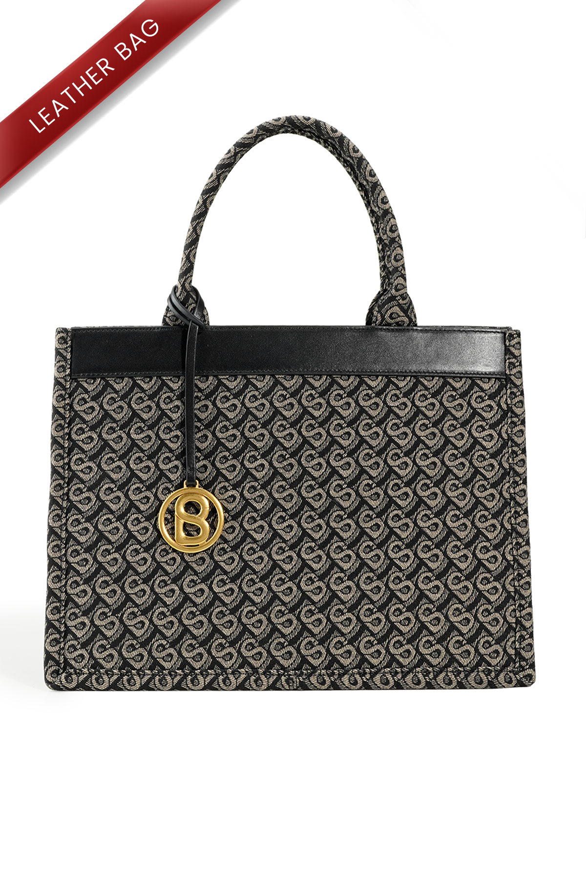 A stylish essential with a spacious design to accommodate all your daily necessities. Adorned with the striking Bimu Monogram motif and featuring a snap closure, this tote features top handles that provide versatile carrying options.