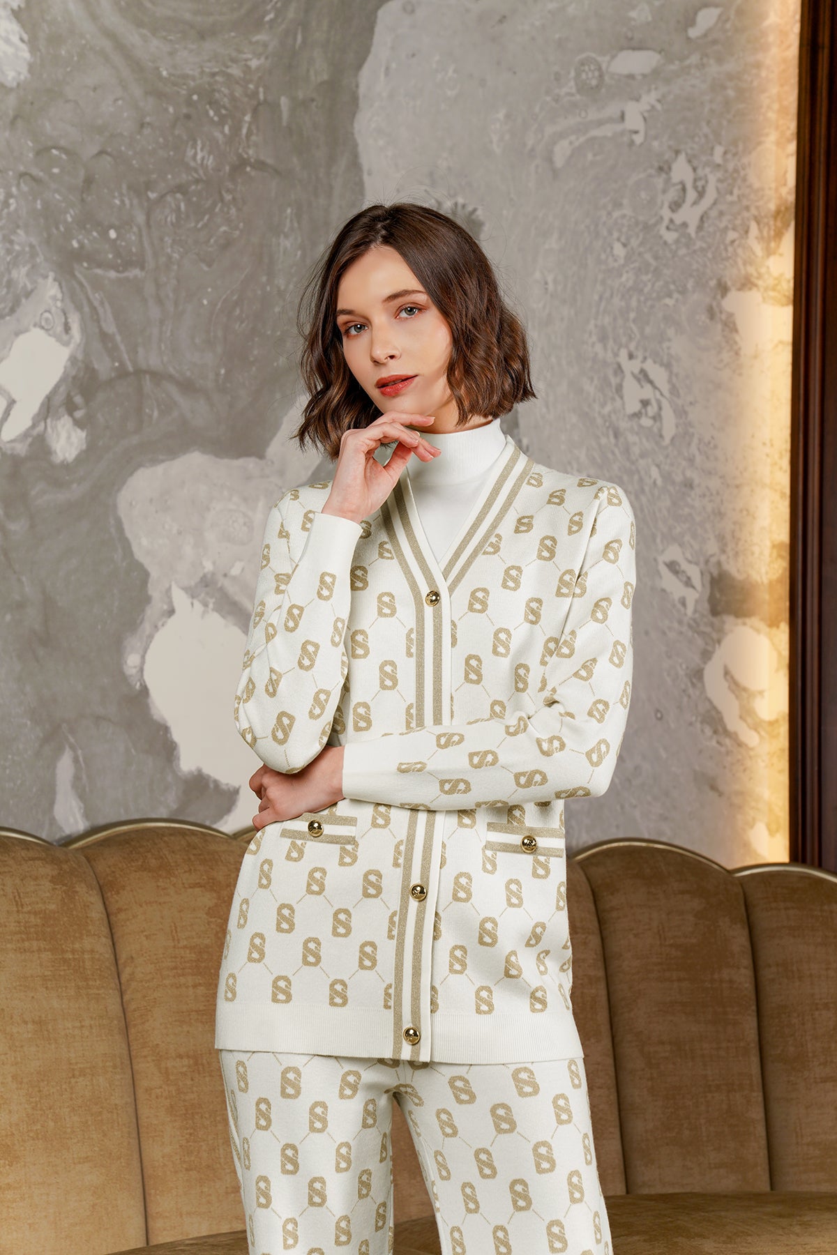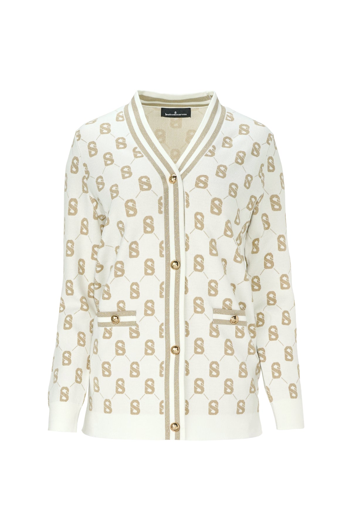 Adorned with the signature B monogram pattern, this cardigan adds a touch of sophistication to your outfit. The V-neck design with gold opening buttons enhances its elegance, embracing both functionality and a cozy feel.