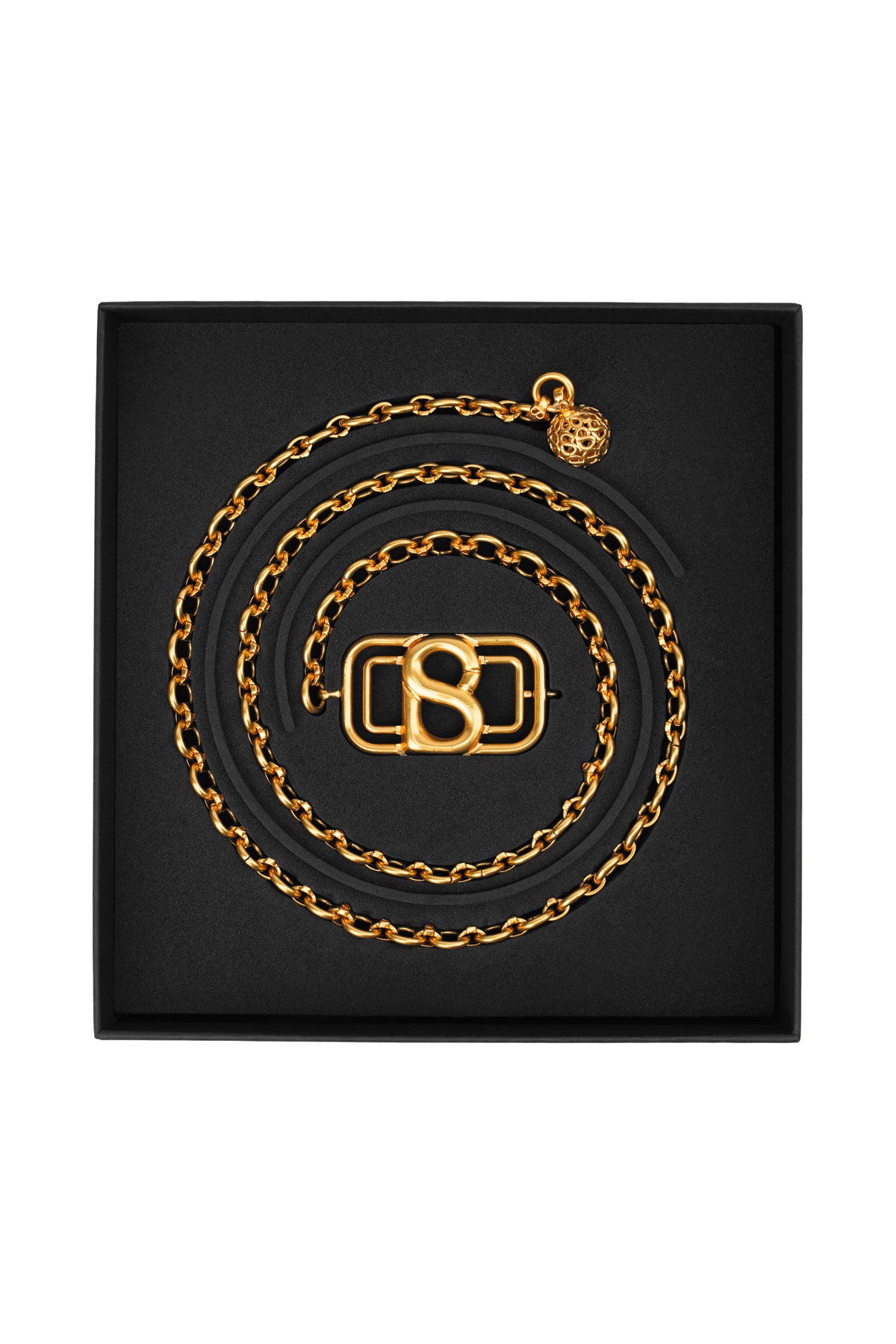 An elegant accessory featuring the signature Briana logo hook buckle and a unique ball pendant of intertwined B logos. Embossed B logos along the chain add a luxurious finishing touch.