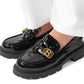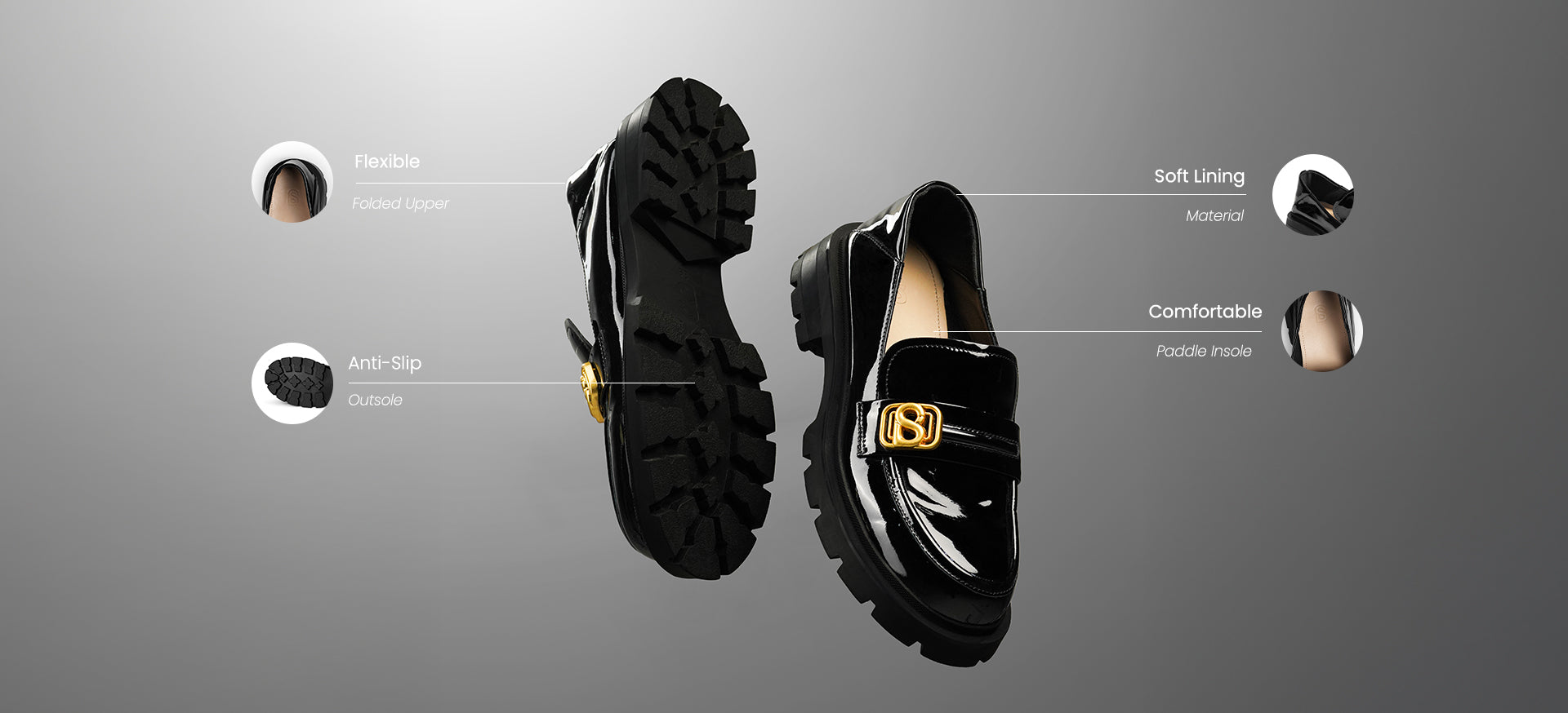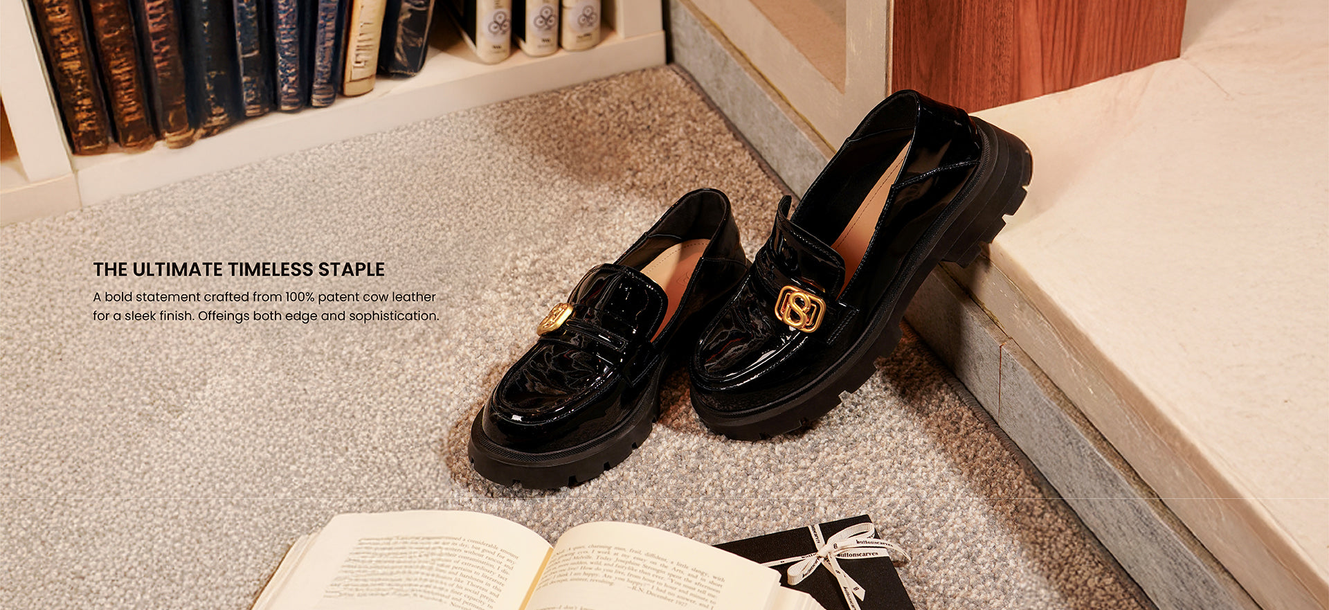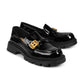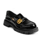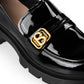 A bold statement crafted from 100% patent leather for a sleek finish. Featuring a chunky silhouette and adorned with the iconic gold Briana logo, this loafer offers both edge and sophistication.
