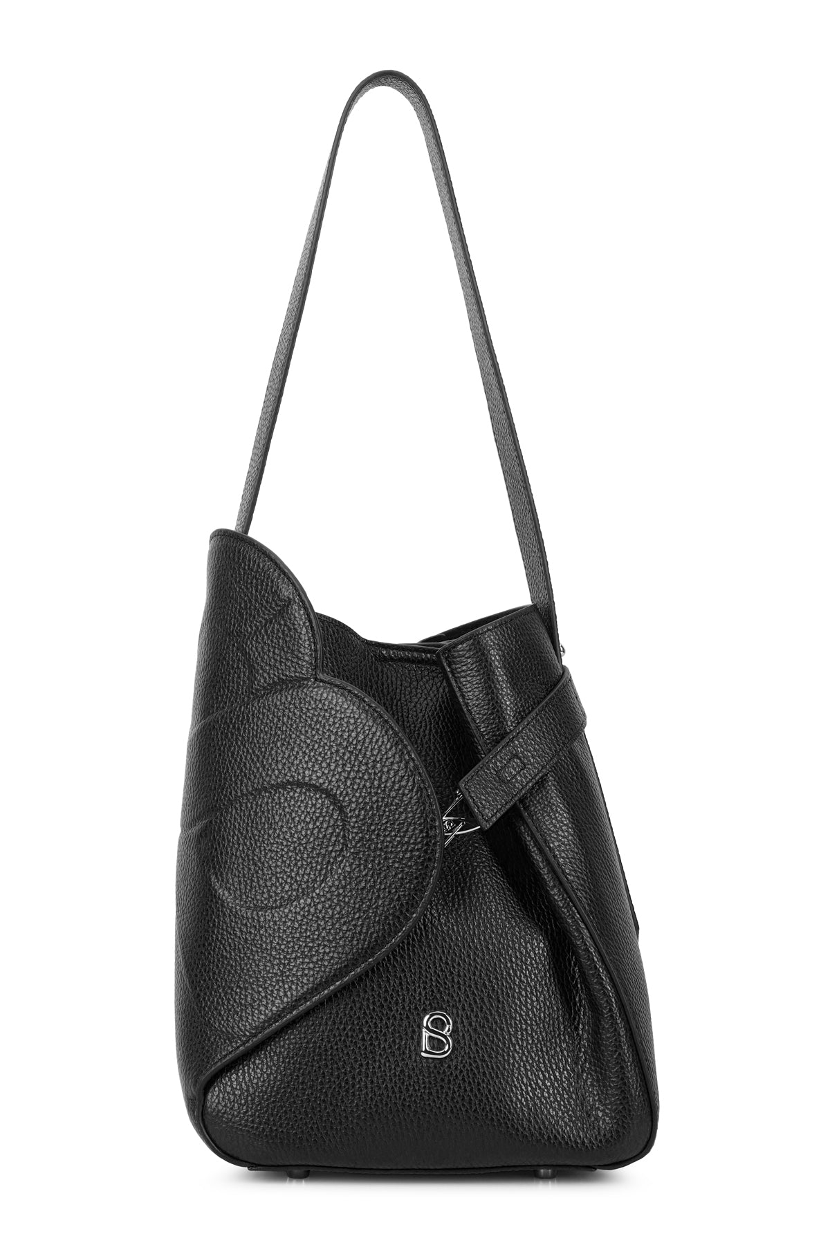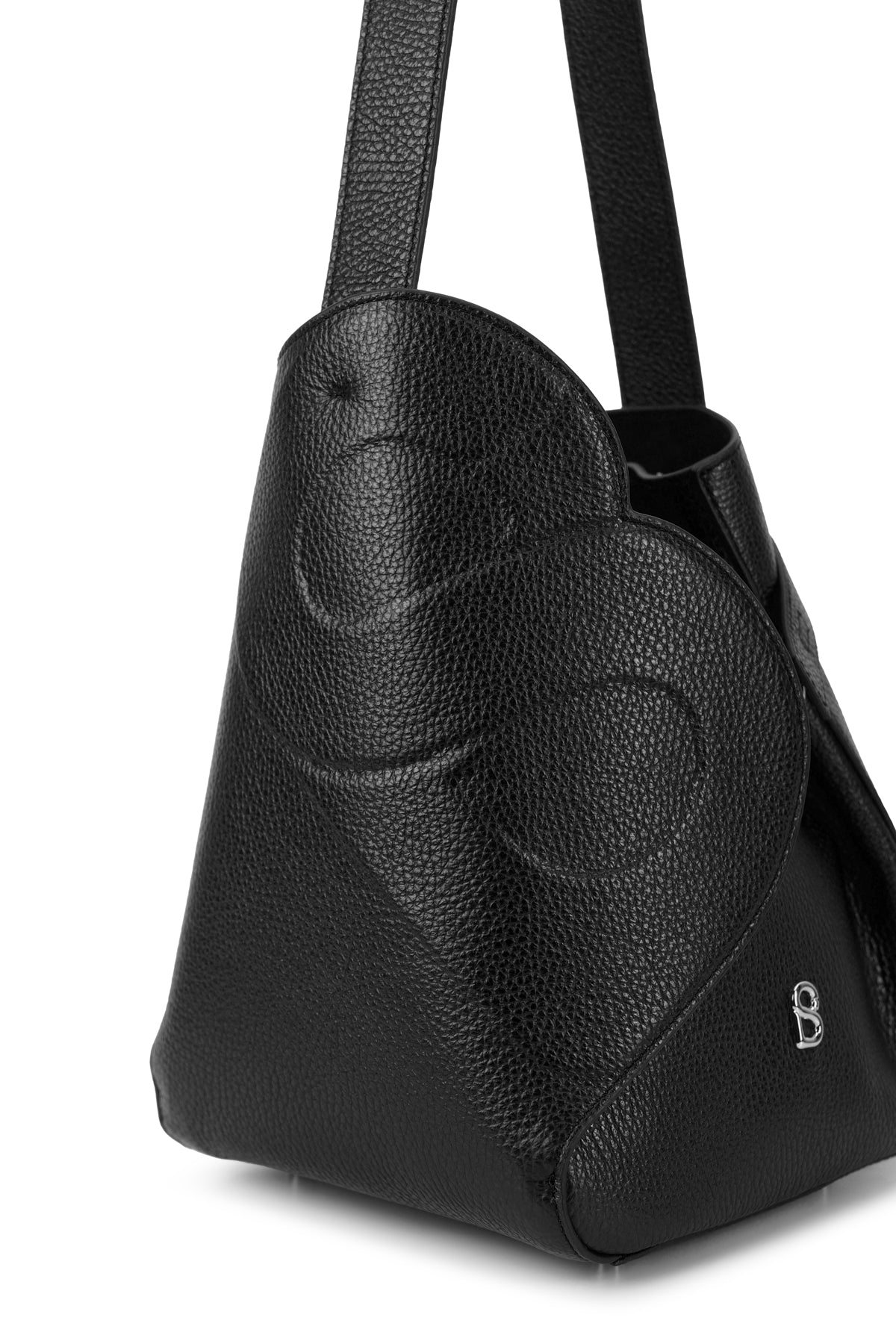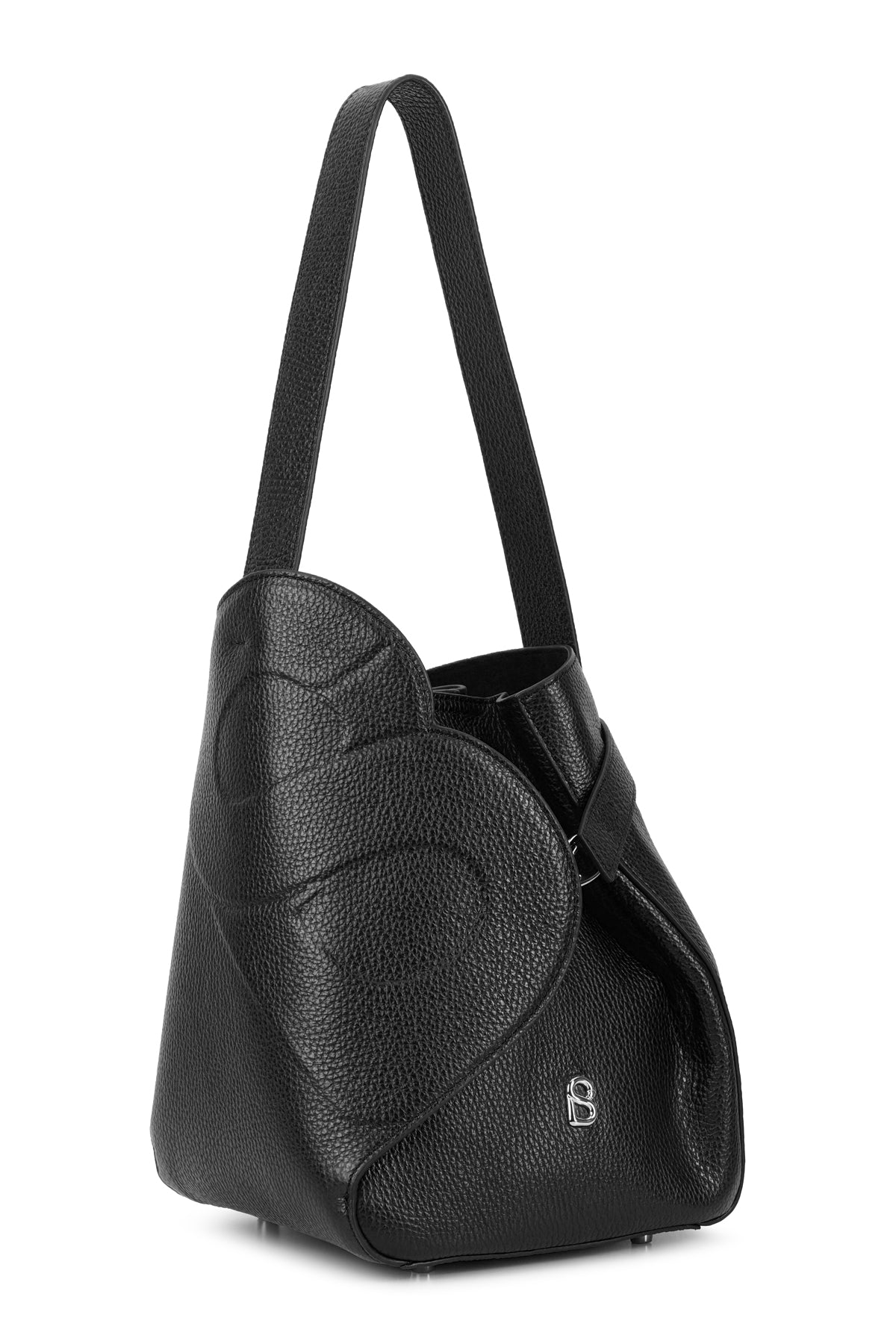 Meticulously crafted from high-quality Italian cow leather. Designed in a folded style bucket bag silhouette, embellished with the embossed signature B logo, this piece exudes sophistication and elegance.