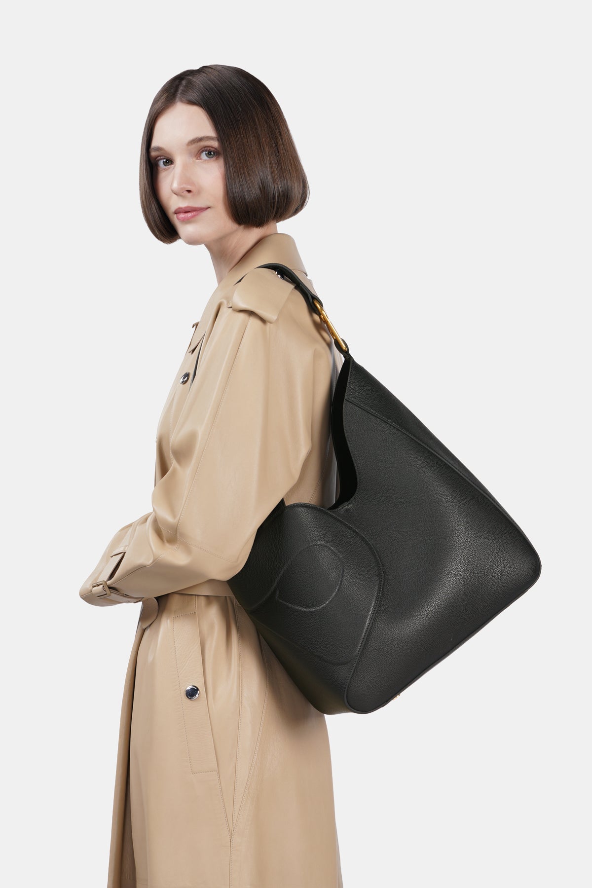 Softly structured with a slouchy silhouette, the Britney Hobo Bag is crafted from supple pebble cowhide leather. Detailed with an embossed B logo and sleek metal accent, it’s finished with a roomy interior—effortless for your everyday.