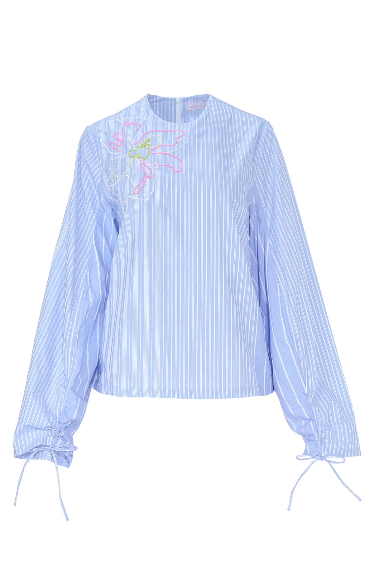 In collaboration with Jovian, this collection is inspired by the paradisiacal summer holidays beneath the clear blue skies. Recently gracing the runway of Jakarta Fashion Week 2024, this blouse is adorned with a striped pattern. Its gathered long sleeves, complete with drawstring ties, add a touch of elegance and versatility to your ensemble.