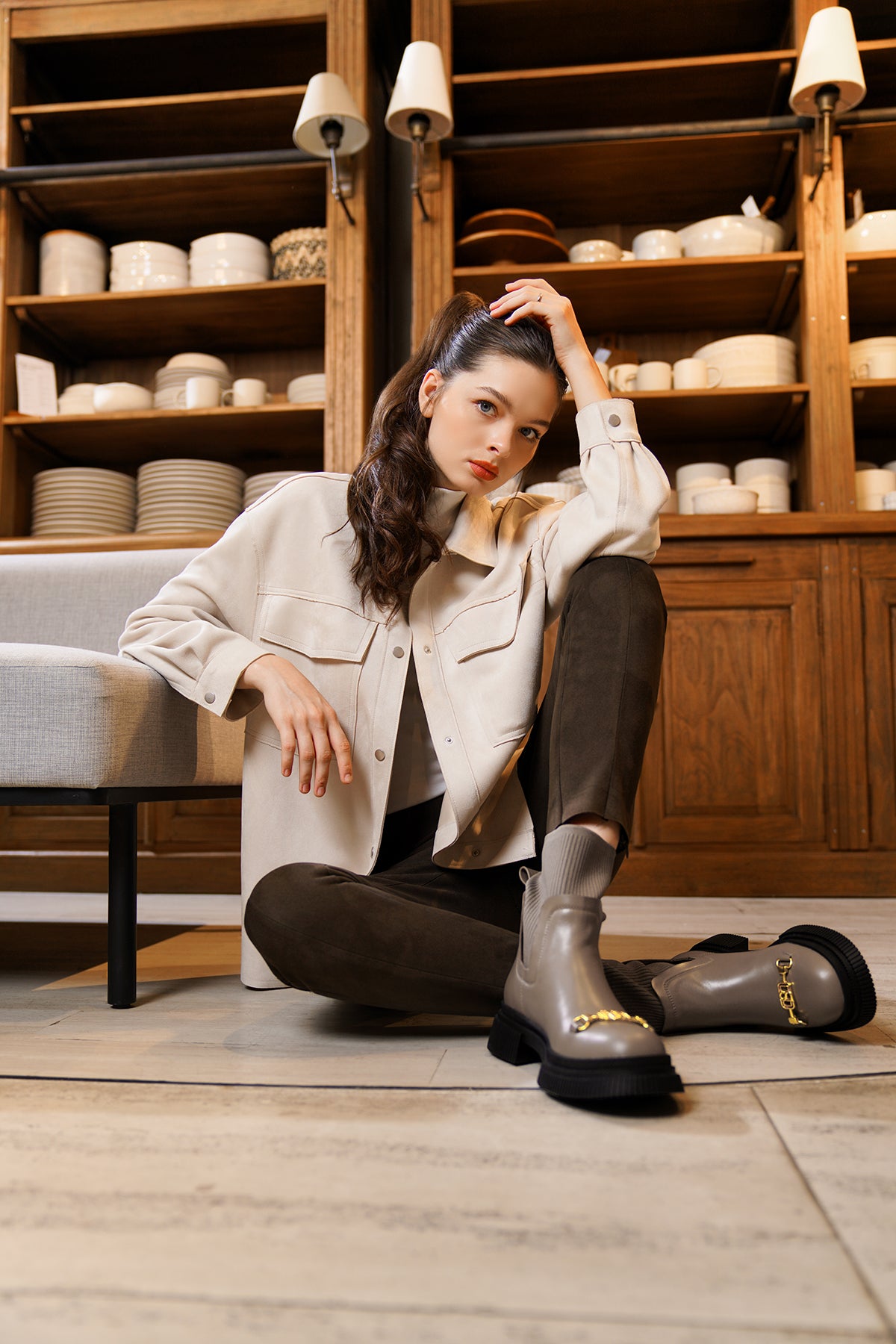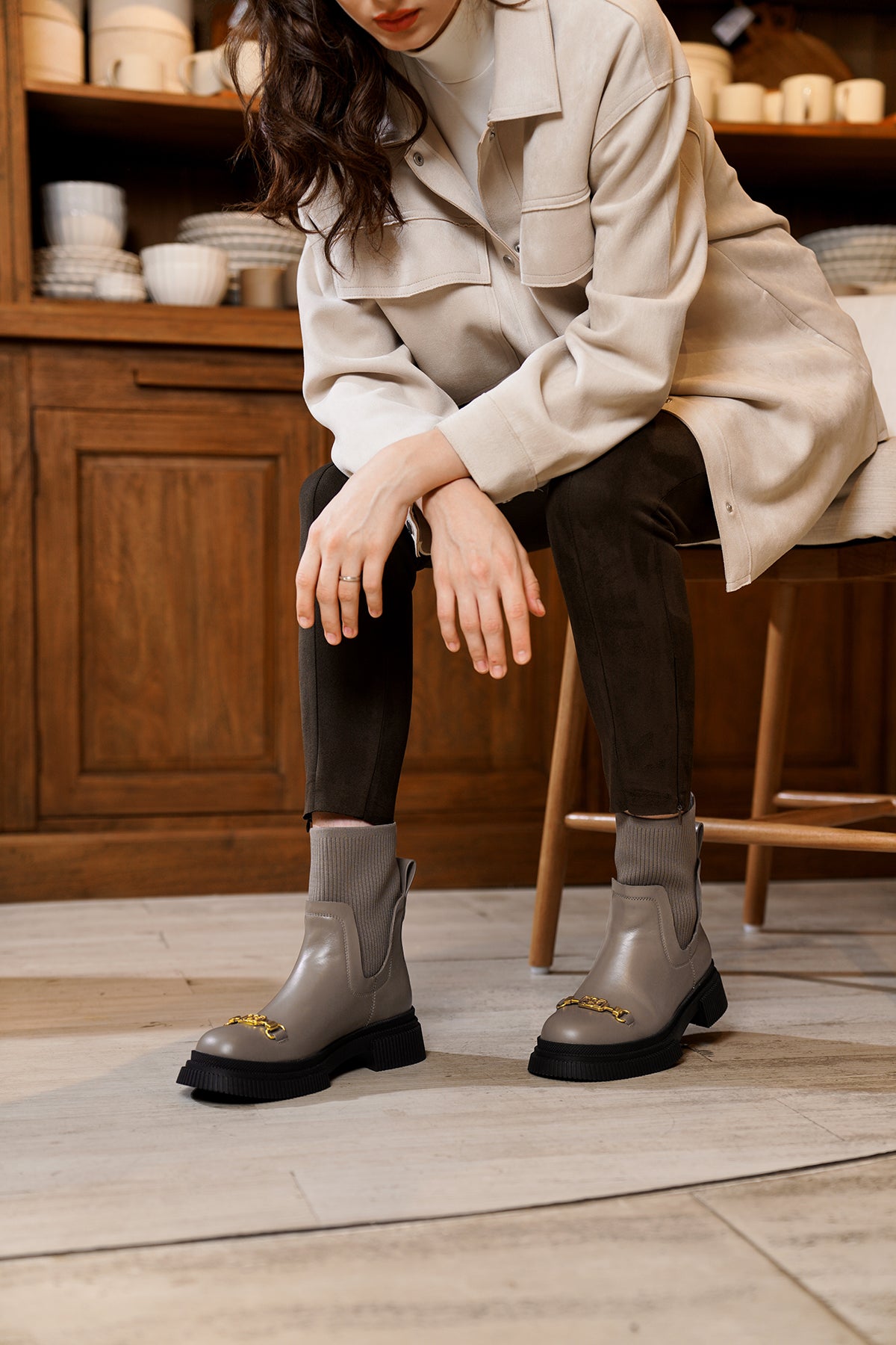These boots feature distinctive ribbed trims with stretch-knit inserts, making it incredibly easy to slip on and off. It features a 5 cm heel height that adds a touch of sophistication to your look.